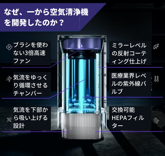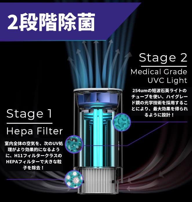 医療業界レベルのUV-C空気清浄機