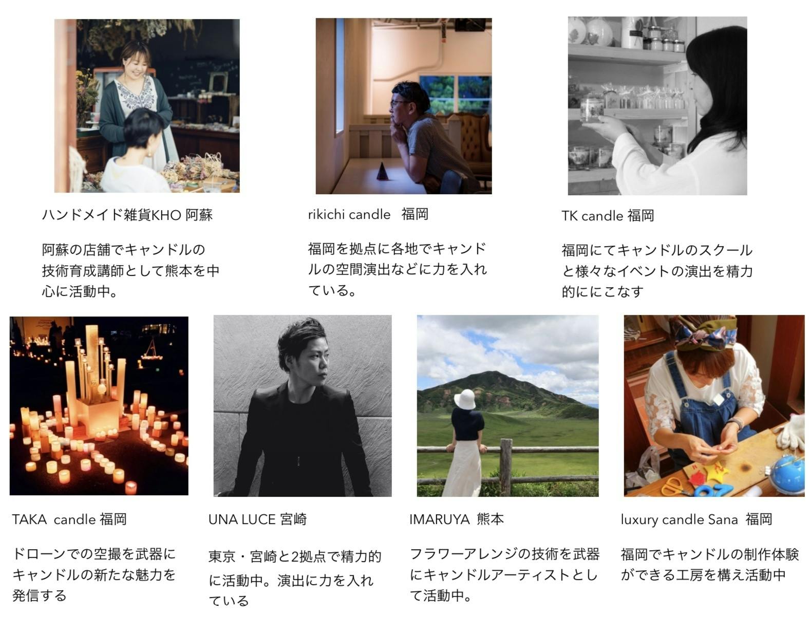 阿蘇キャンドルナイト実行委員会には阿蘇や九州内で活動しているキャンドル作家をはじめ熊本の企業に所属し熊本や阿蘇を盛り上げようとする有志で構成された団体で、現在14名ほどが所属しております。