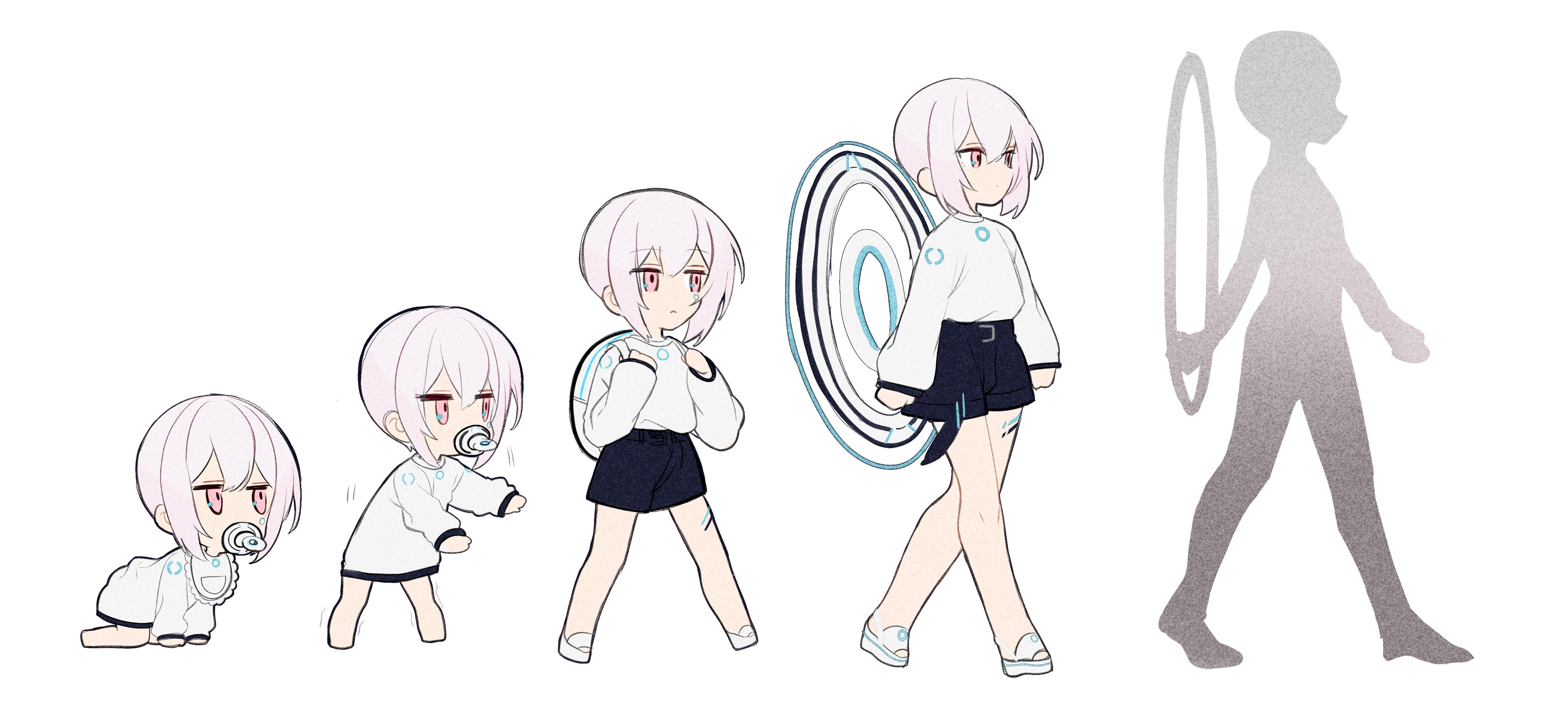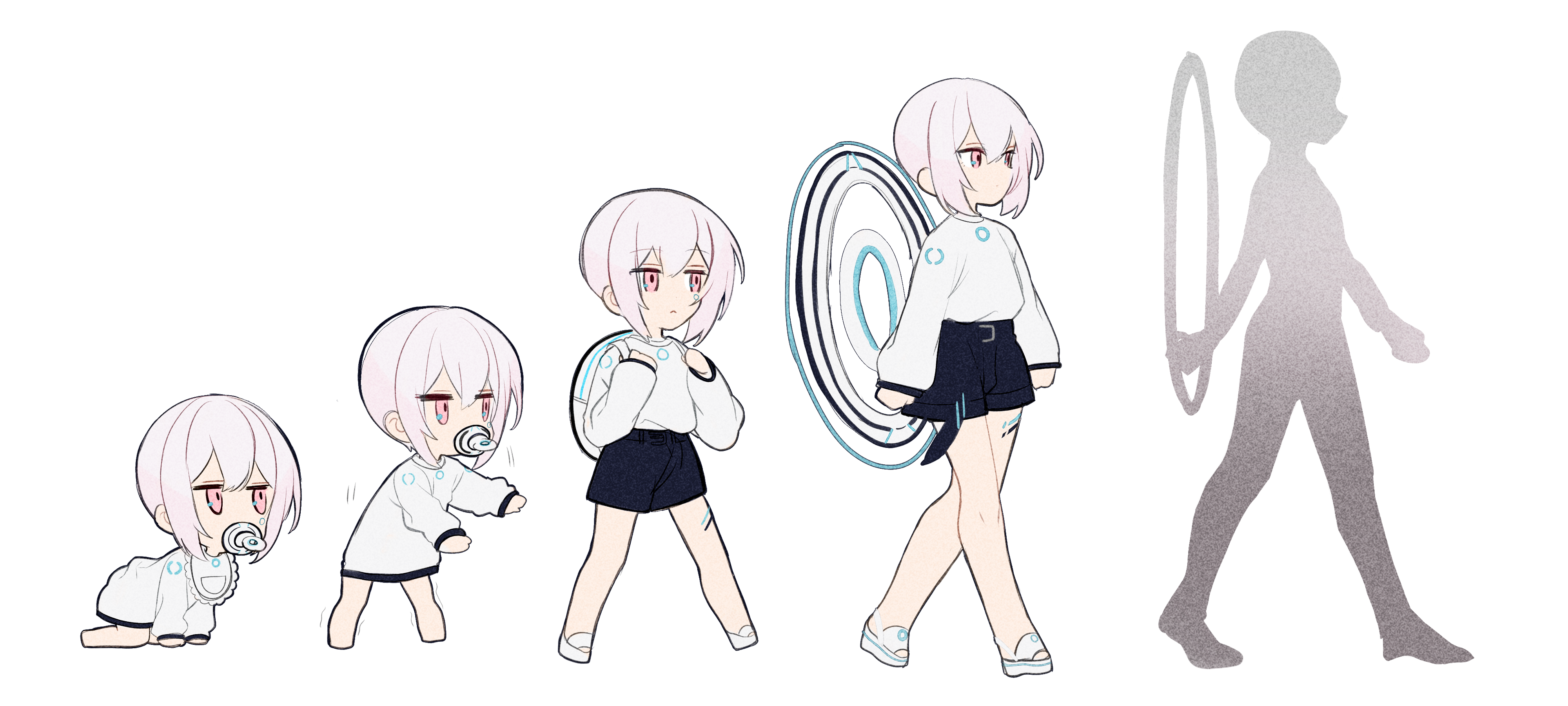 紡ネンは生まれ落ちてからTシャツ、ハーフパンツのシンプルスタイル。