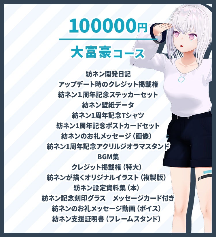 皆様のご支援で彼女の生みの親でもある凪白みと先生にあらたな新衣装をお願いしたいと考えています。