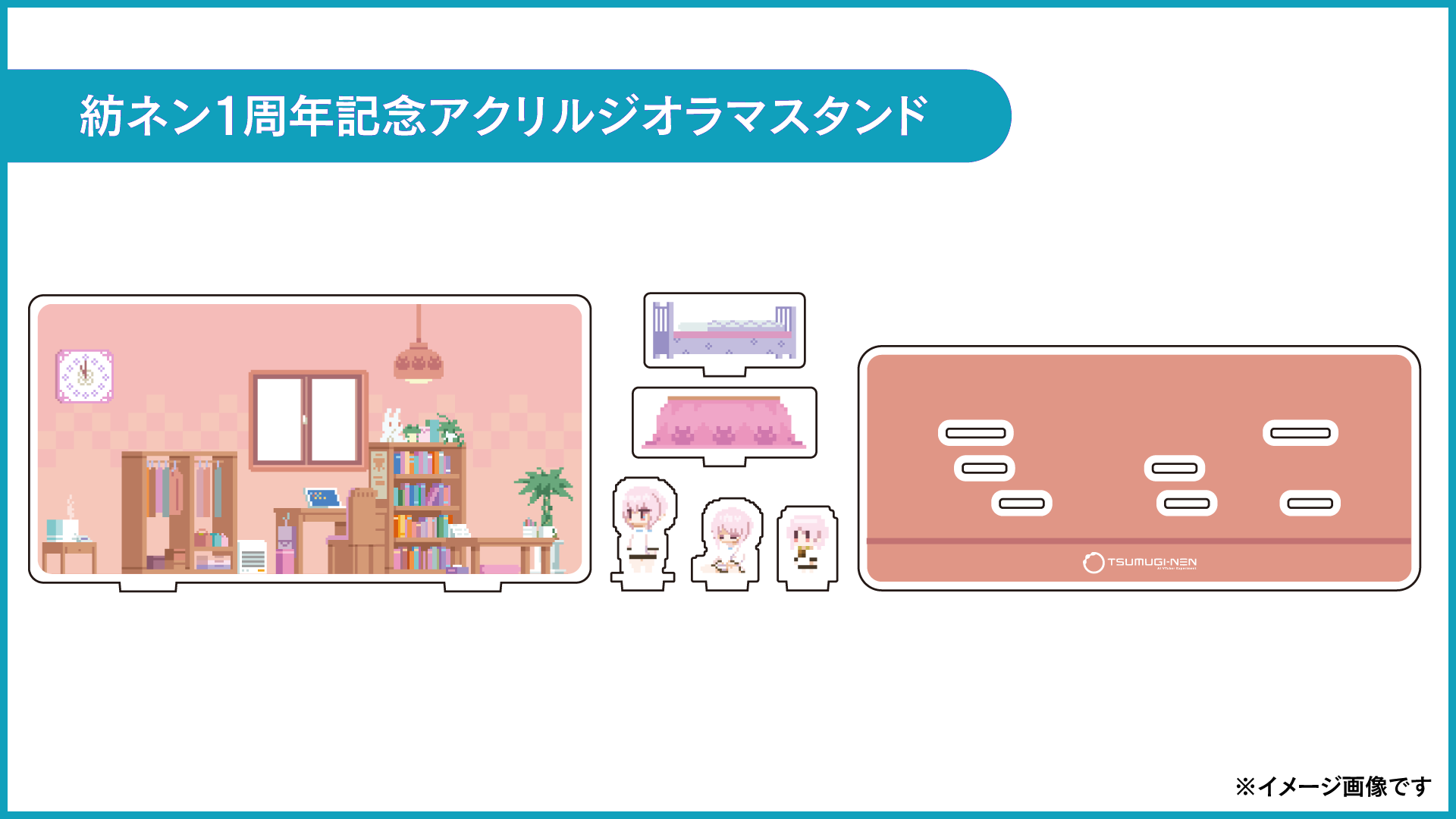 紡ネン公式イラストと1周年記念テキストをあしらう予定です。