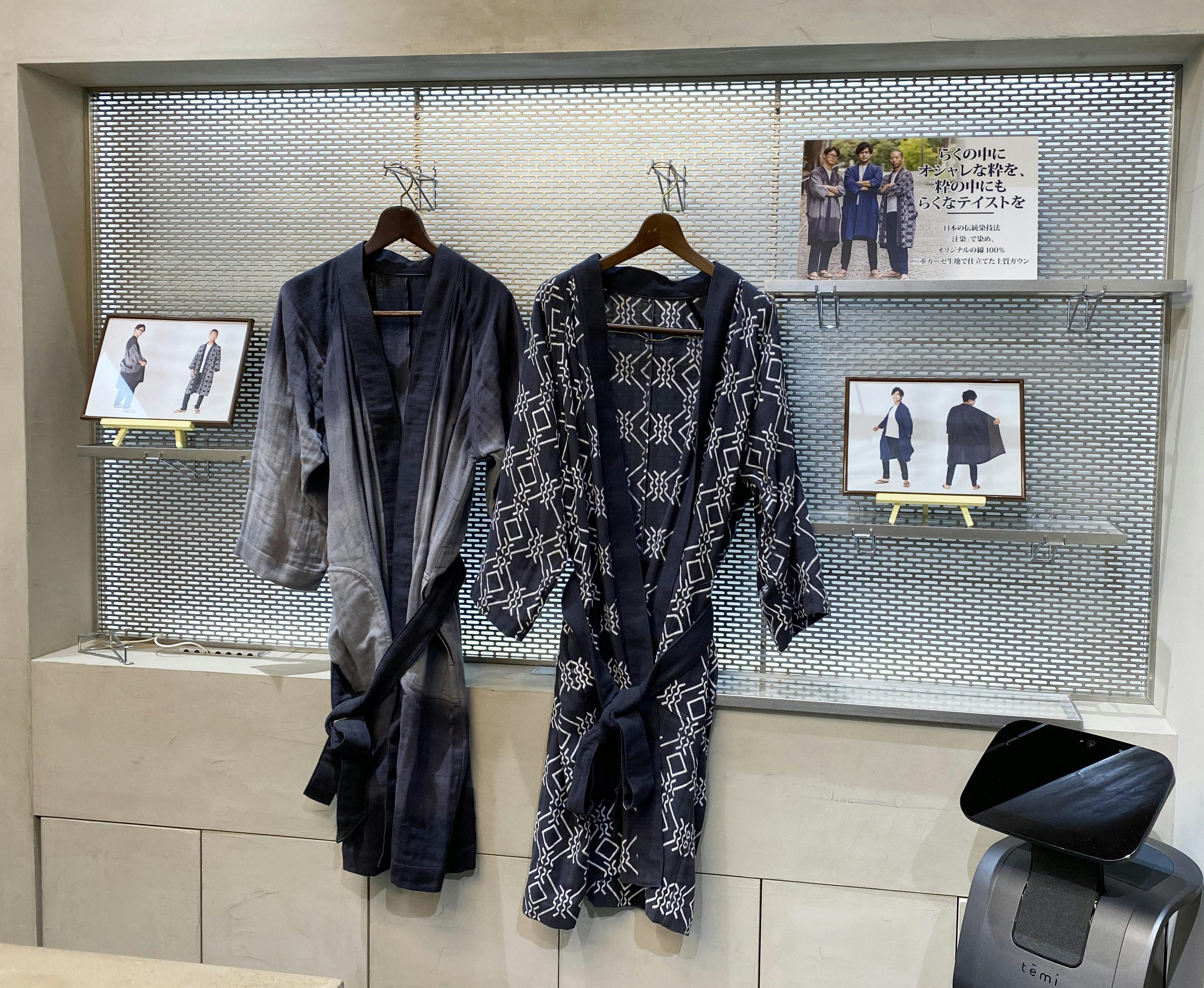 創業1889年、明治時代から代々引き継がれている東京和晒の上質な生地をグレードアップさせ、伝統技法「注染」で染め上げた生地をガウンに仕立て上げました。