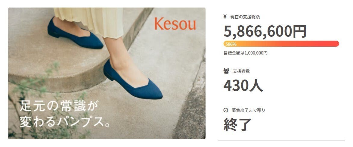 多くの方にご支援いただいたKesou Pumpsについて、ご紹介いたします。