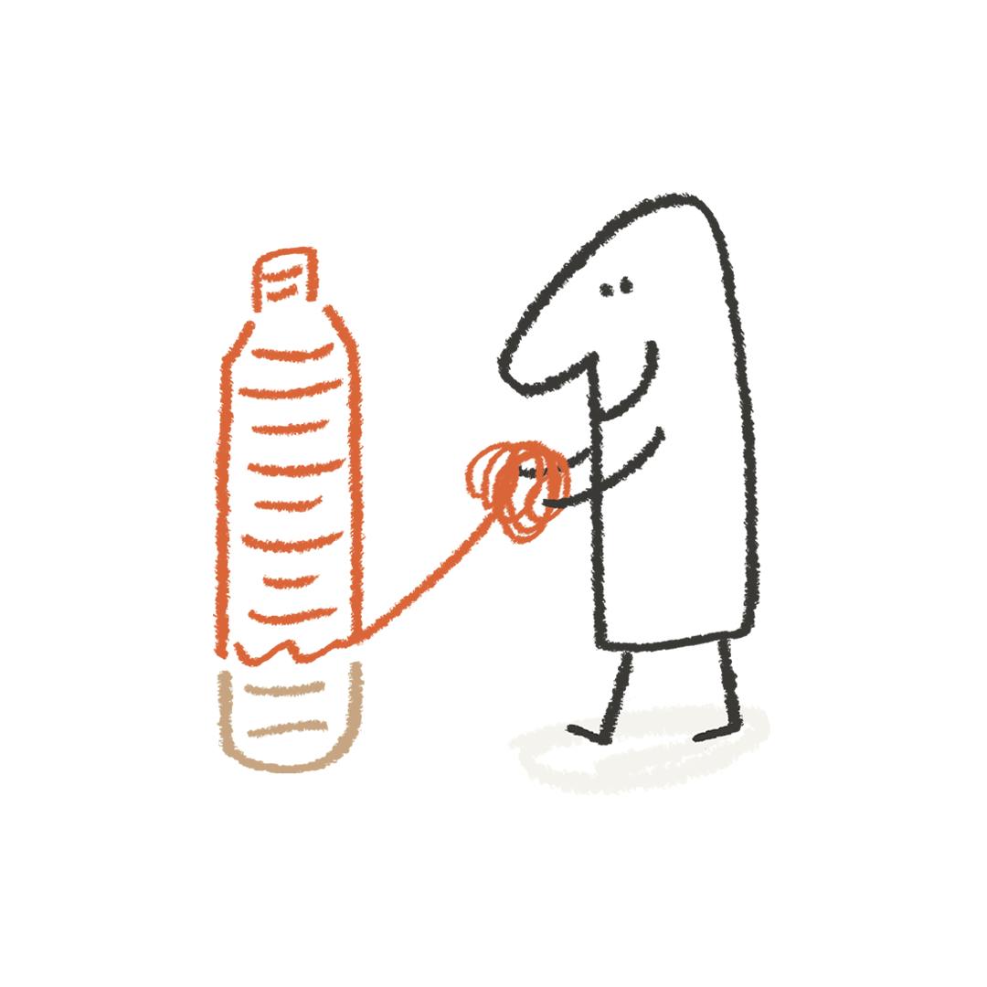 アッパーに利用しているペットボトル再生糸は、北千住マルイでお客さまからお預かりしたペットボトルを使用してつくられています。