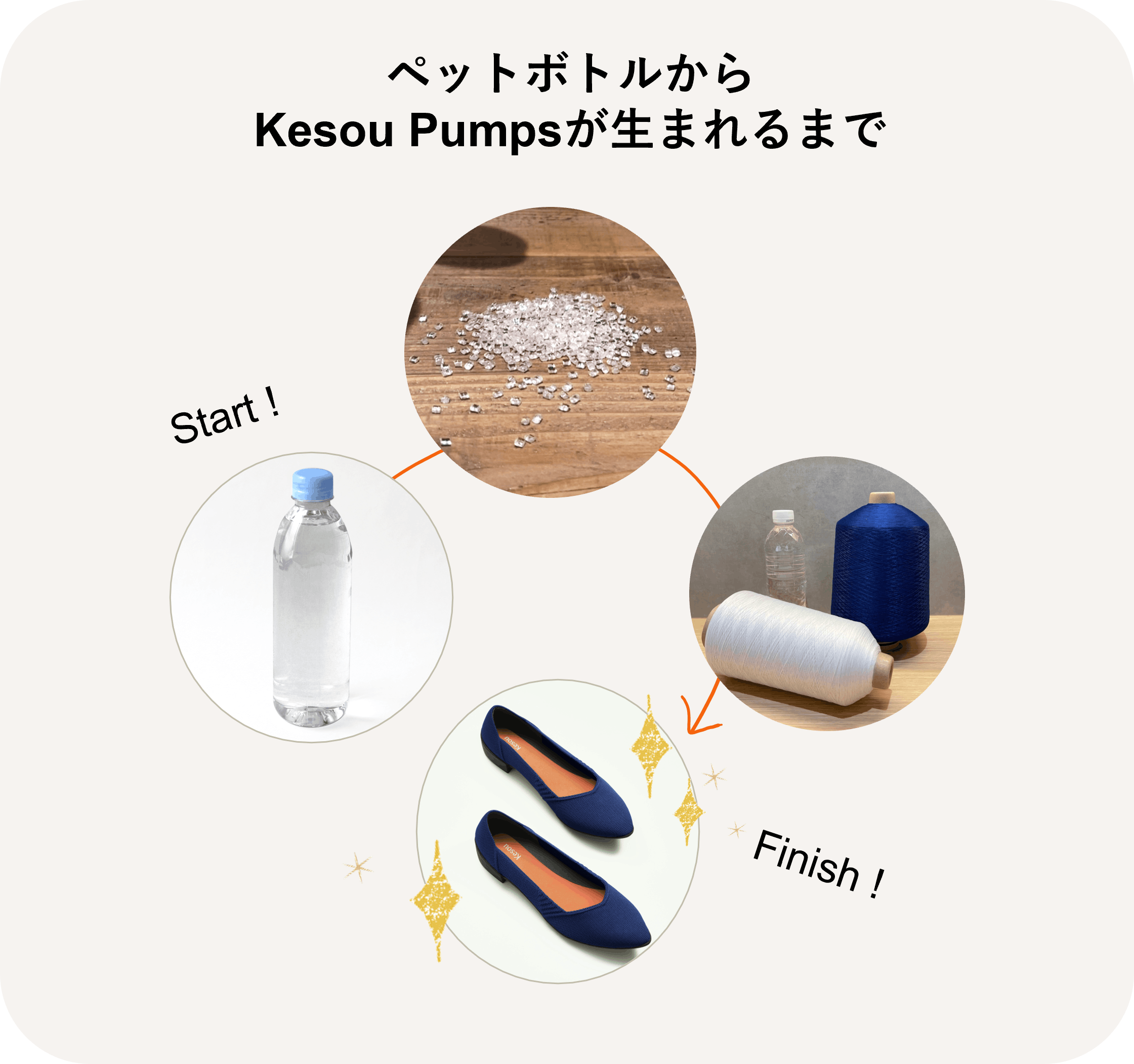 リサイクル先のひとつが、私たちのKesou Pumpsになります。