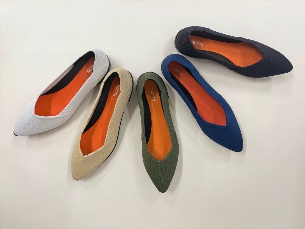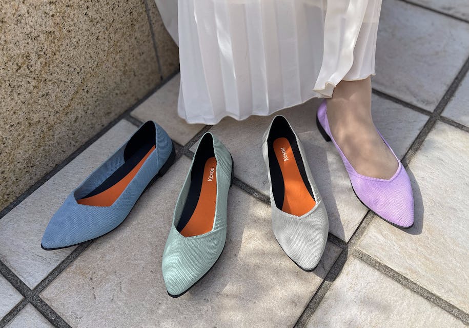 Kesou Pumpsは、まるでヒールがあるかのようなアウトソールがトレードマークです。