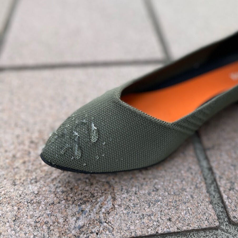よく「雨の日に履けますか?」というご質問をいただきますが、Kesou Pumpsははっ水加工もほどこしております。