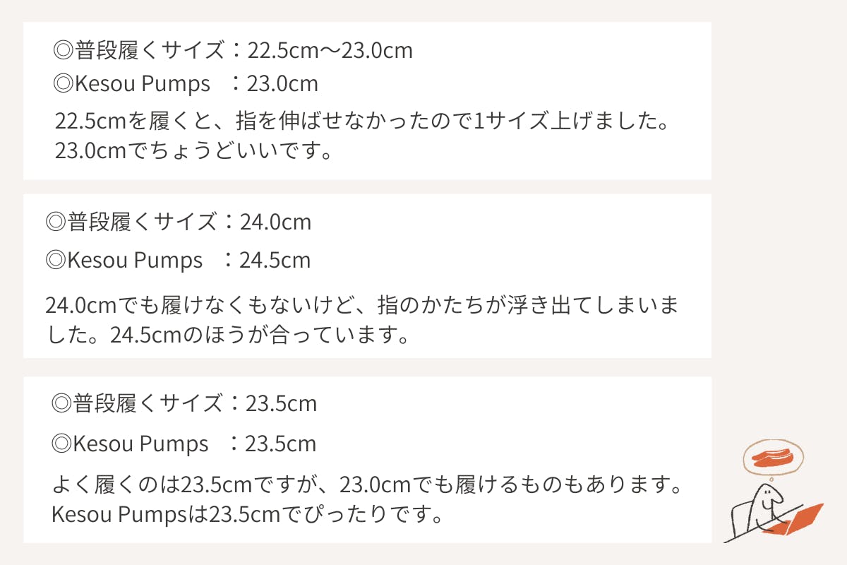 ■Kesou Pumpsのサイズの選び方