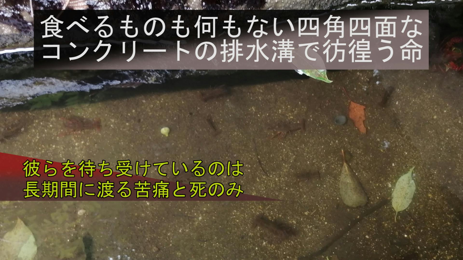 排水溝では、餌もほとんどなく、餓死したり、脱皮直後の弱い個体が共食いされたりして、非常に長期に渡って苦しみながら死んでいきます。