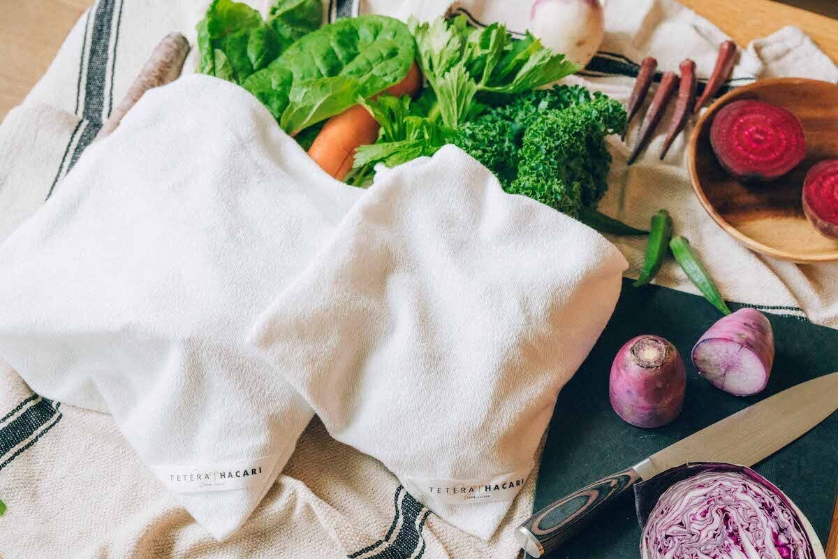 コンセプトは、プラスチックを使わないで、野菜を日持ちさせることができ、繰り返し使用できるようなもの。そこで、今回は、寛ぎと機能性を備えたサウナウェアを始め、心地よさと上質さを求める大人に向けたワンマイルウェアを展開するファッションブランド「TETERA」と共同で開発しました。何度も打ち合わせをして、大きさや形状、布の厚さを確認し、今回の形に行き着きました。