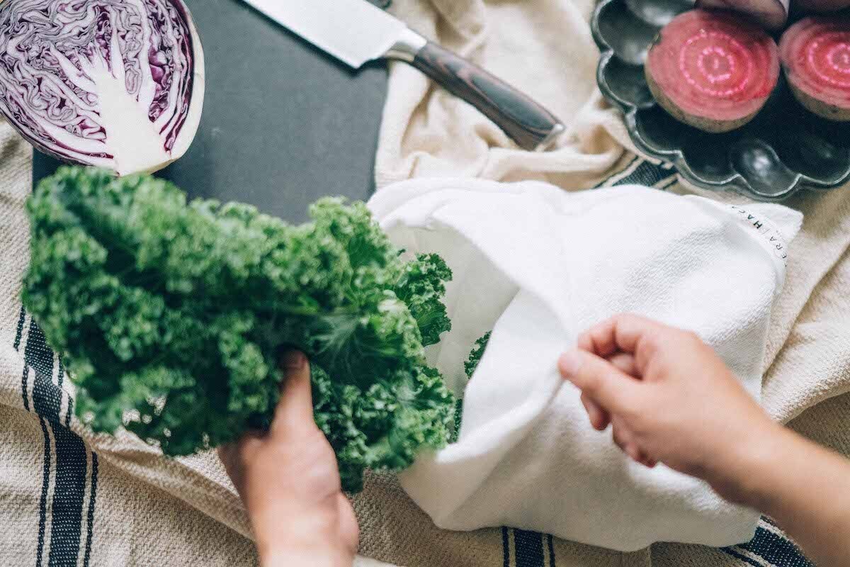Vegewrapは、布製なので、繰り返し洗ってお使いいただけます。従来の野菜保存袋は、プラスチックなことが多く、また一度使うとすぐにゴミになってしまうものばかりでした。ただスーパーなどで多く見られている野菜は、プラスチックの袋に入っていて、これが日持ちをさせるために、非常に重要で、バラで購入したり、一度袋から出すと、すぐ野菜がしおれてしまいます。