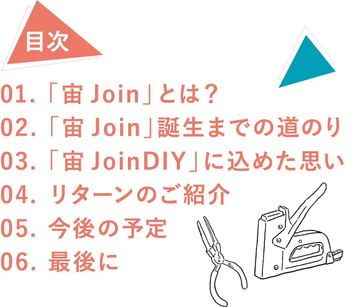 皆さんと一緒に宙JoinDIYを作り上げていけたら、私たちはとても幸せです。