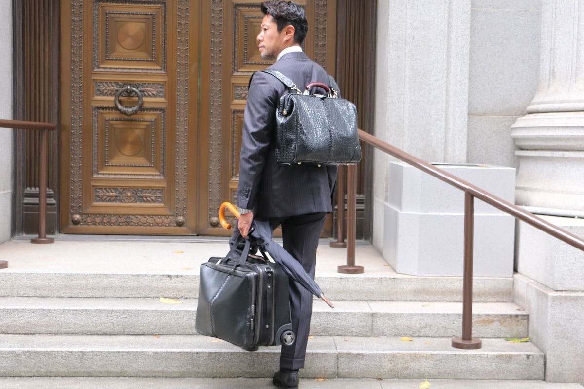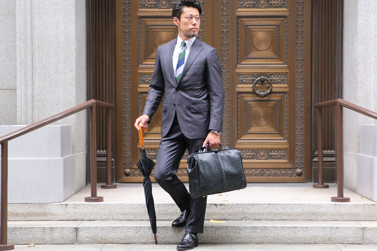 スーツに合うレザーバッグを、雨の日も使いたい...。