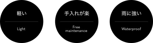 「軽い」「雨に強い」「メンテナンスフリー」と三拍子揃った、まさにビジネスマンの夢を叶える