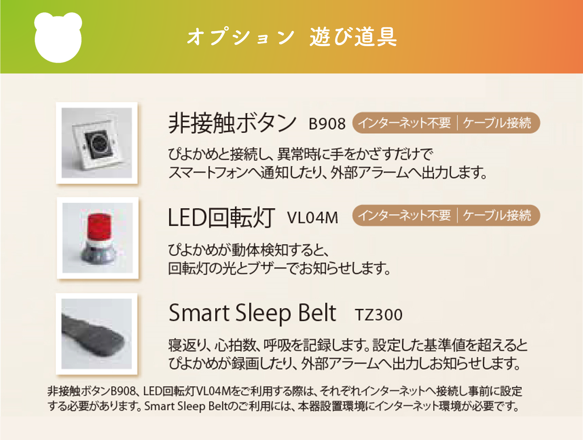 ※非接触ボタン、LED回転灯、Smart Sleep Beltは別売りです。