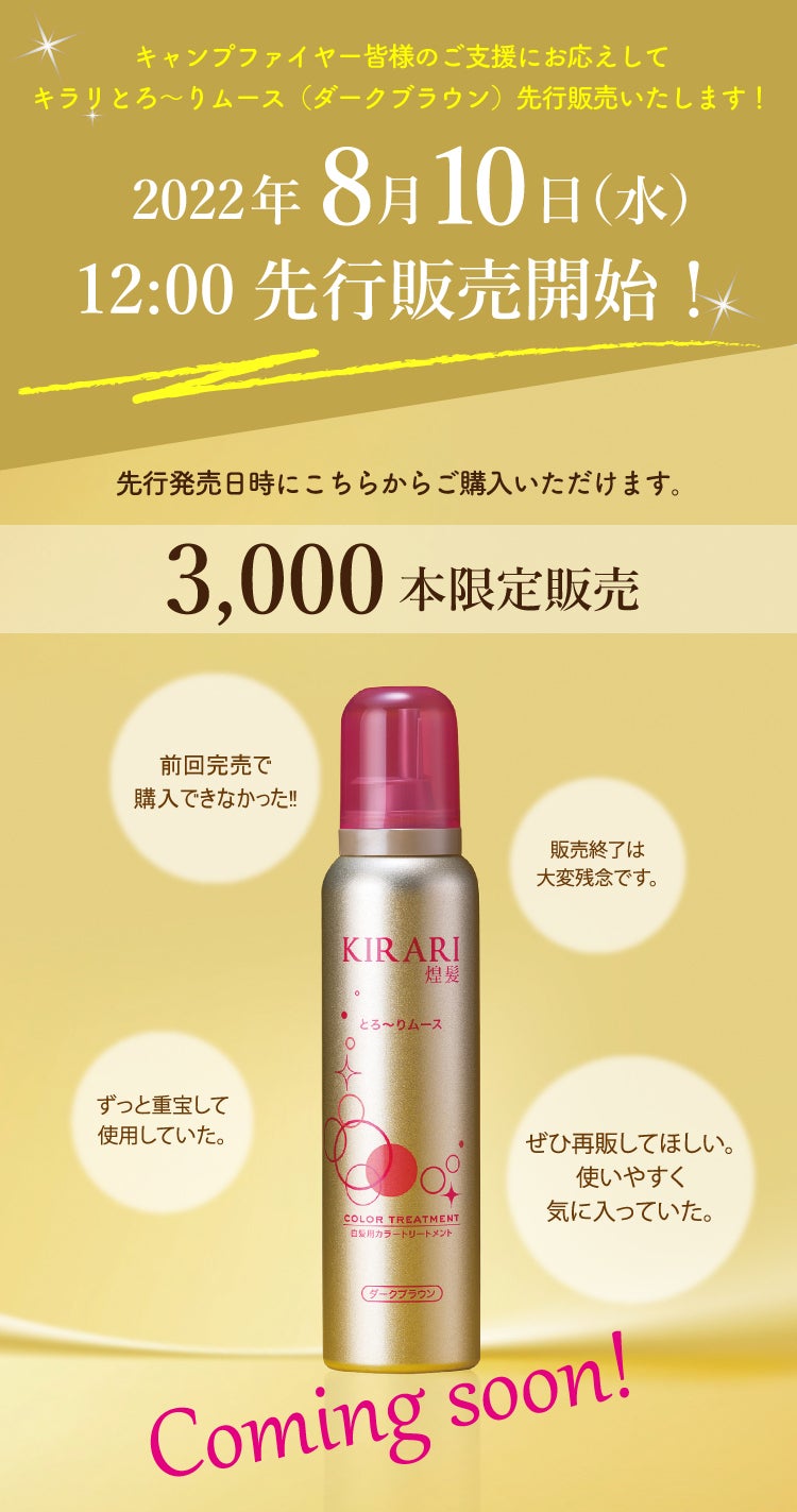 今回のプロジェクトでは、髪と頭皮にやさしい白髪用カラートリートメント「キラリ とろ~りムース」の再販を目指します。