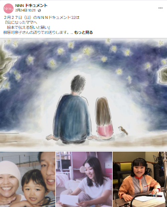 本日深夜放送!!! ‟NNNドキュメント”|日本テレビ 鳥になったママへ 「絵本で伝える想いと願い」
