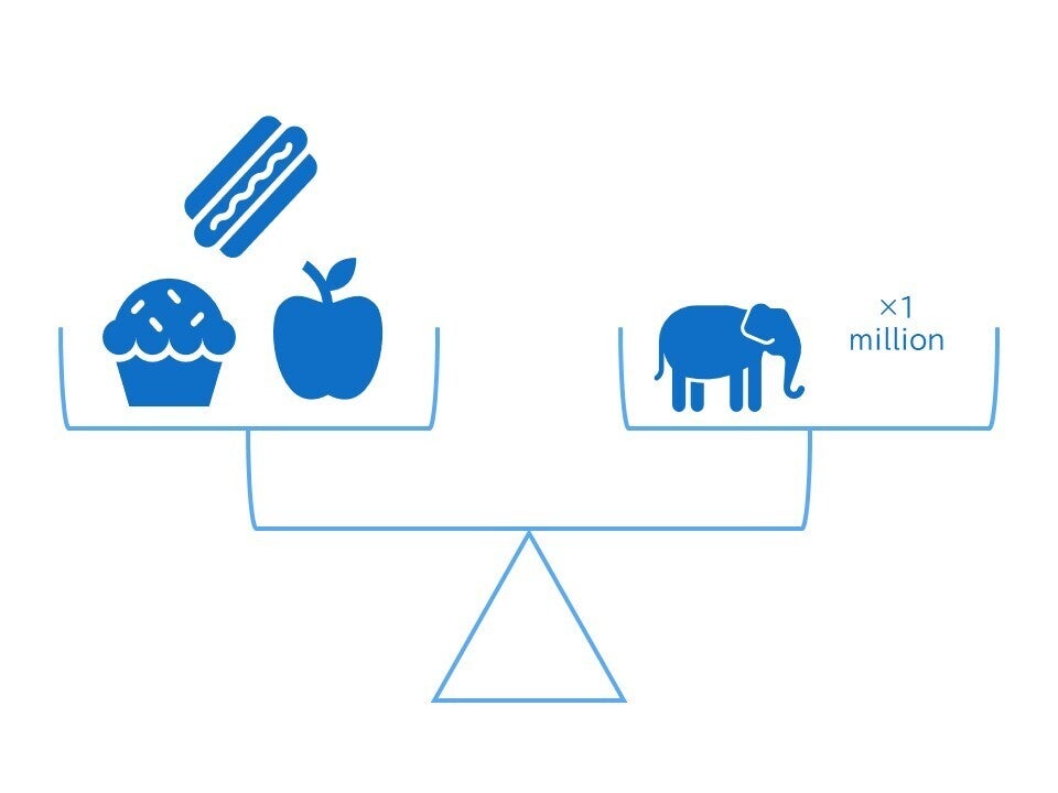 アフリカゾウのオスがおよそ6トン(※2)と言われているので、日本だけで毎年ゾウ100万頭と同じ重さの食べ物が捨てられているという計算になります。恐ろしい…