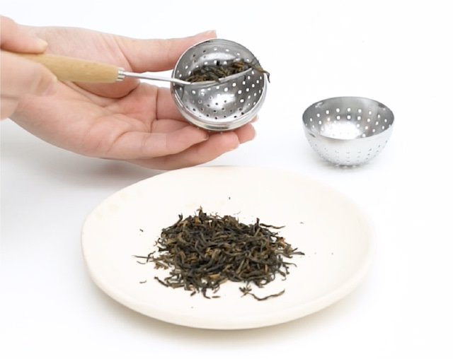 茶葉を入れるボール状のティーフィルターがフタにぴたっとつくことで、