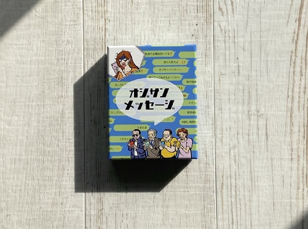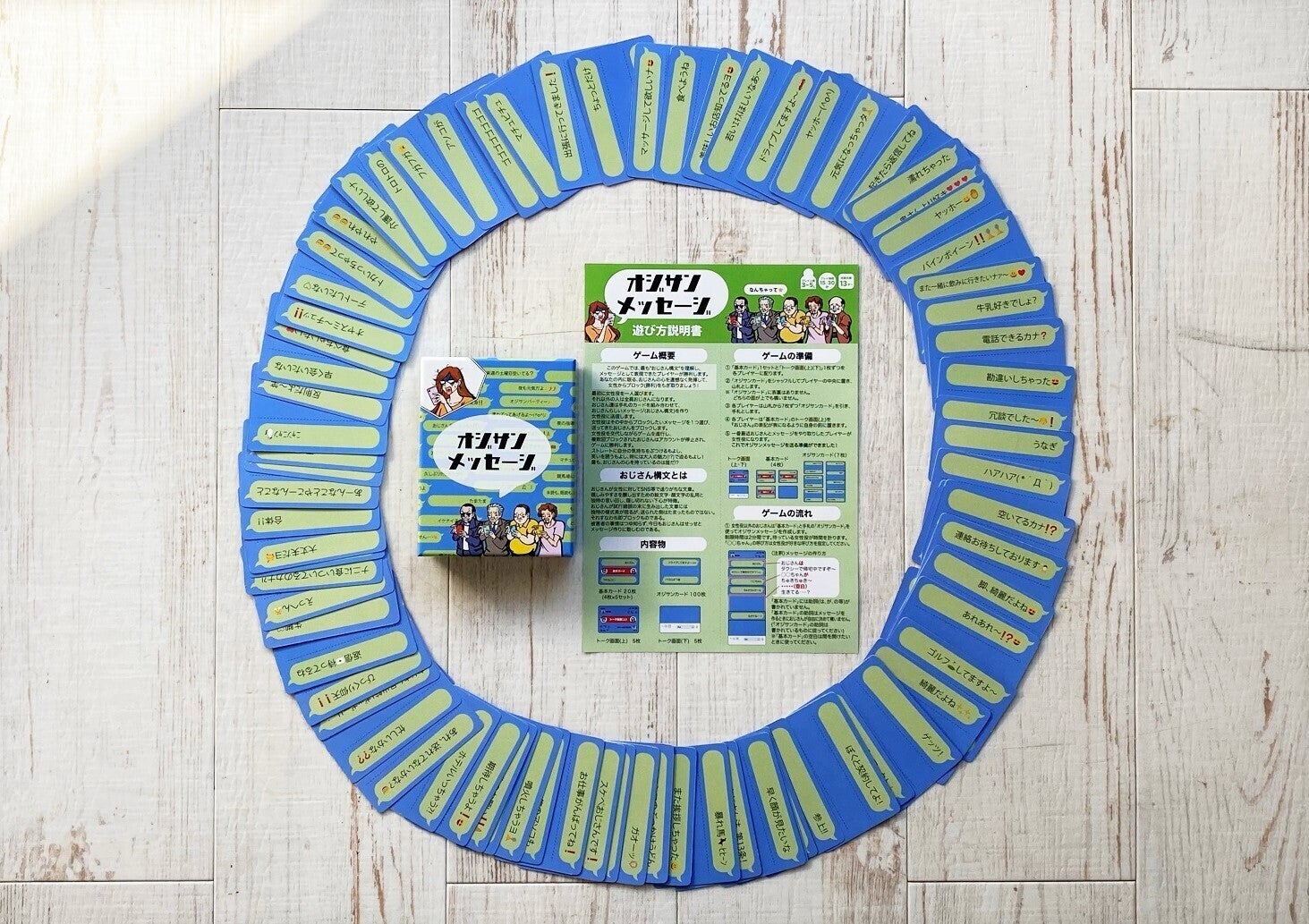ボードゲーム『オジサンメッセージ』本体10個と特典として今回独自に調査したオジサンアンケートを封入いたします。アンケートの中身は見てのお楽しみです。