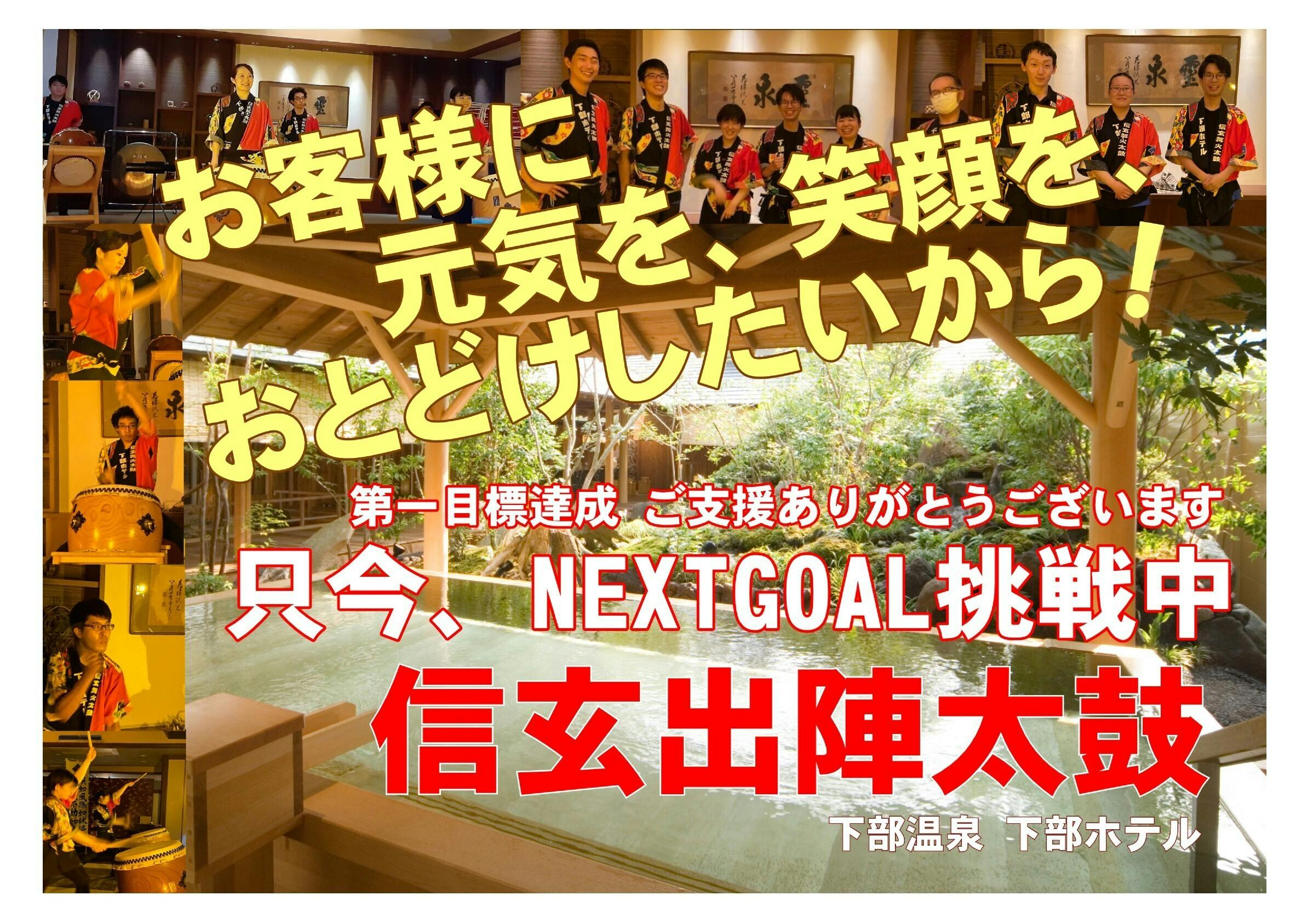 そして下部ホテル一番人気のおもてなし「信玄出陣太鼓」の太鼓修理費用の工面が厳しいのでクラウドファンディングを利用して修理しようという意見があり、役員を含め相談した結果プロジェクトを立ち上げることになりました。
