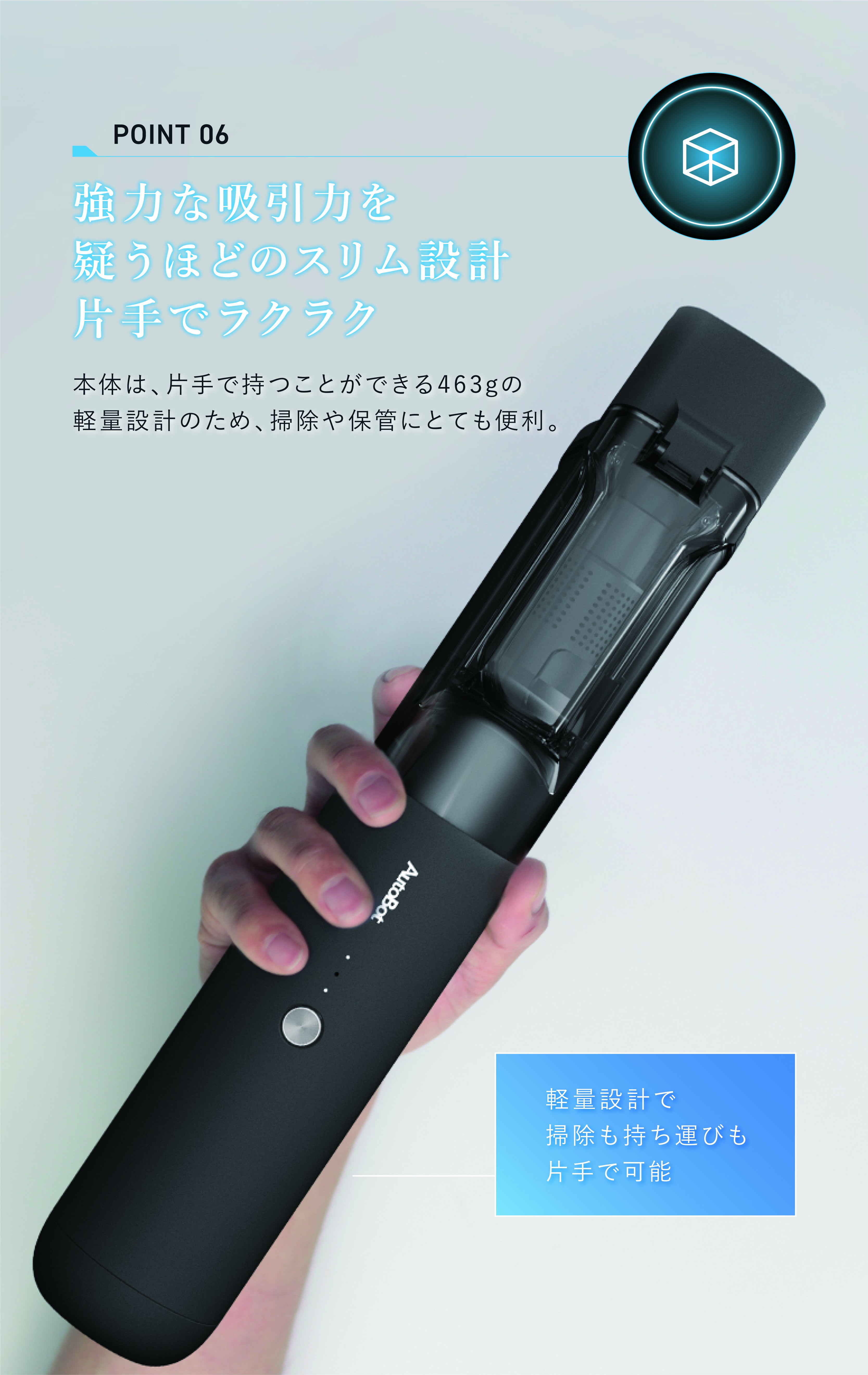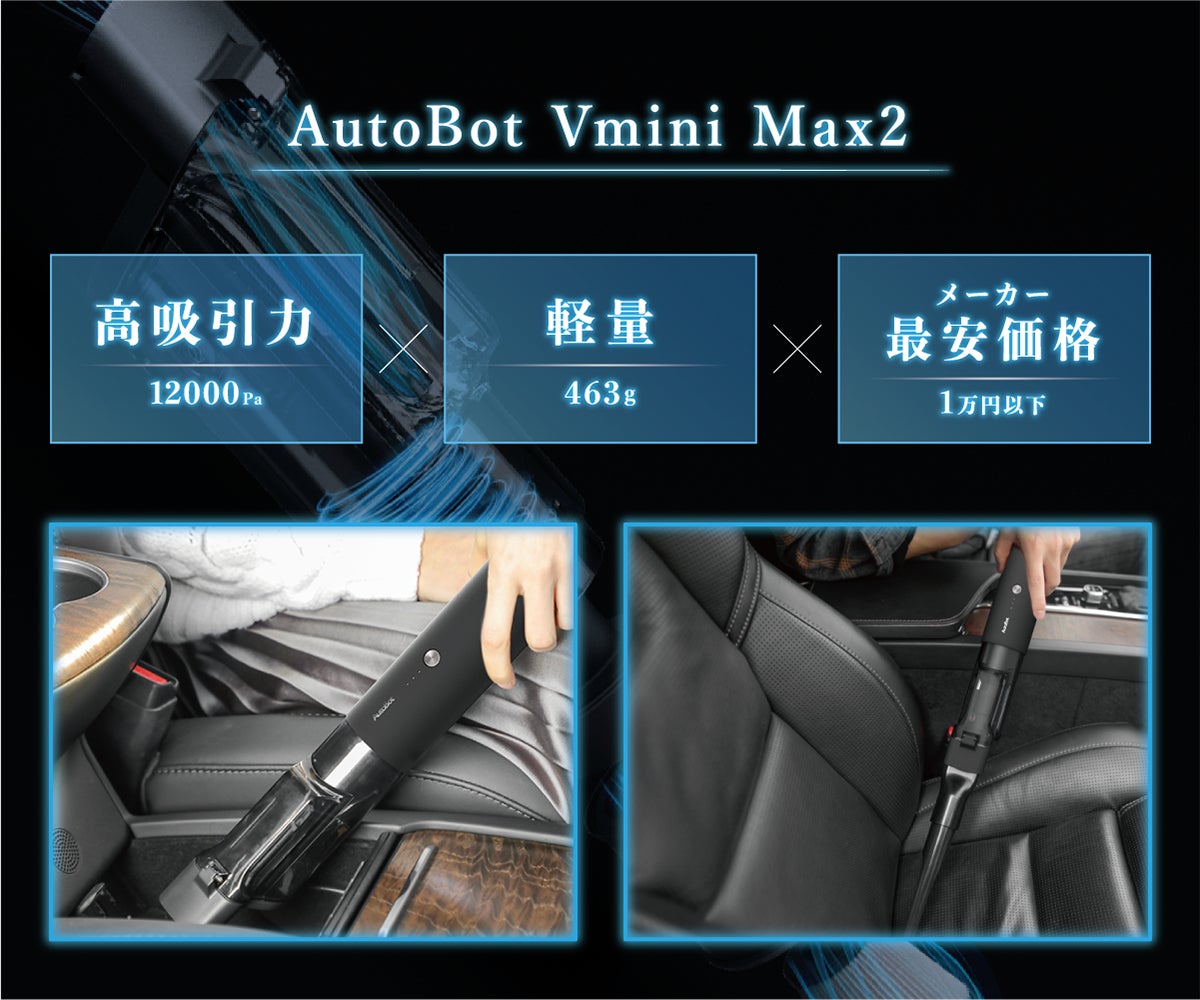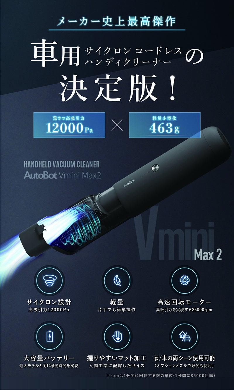 さらに今回前作の「AutoBot Vmini」よりさらにお求めやすい価格に改良を重ね三拍子揃った「超小型コードレスハンディクリーナー」です!