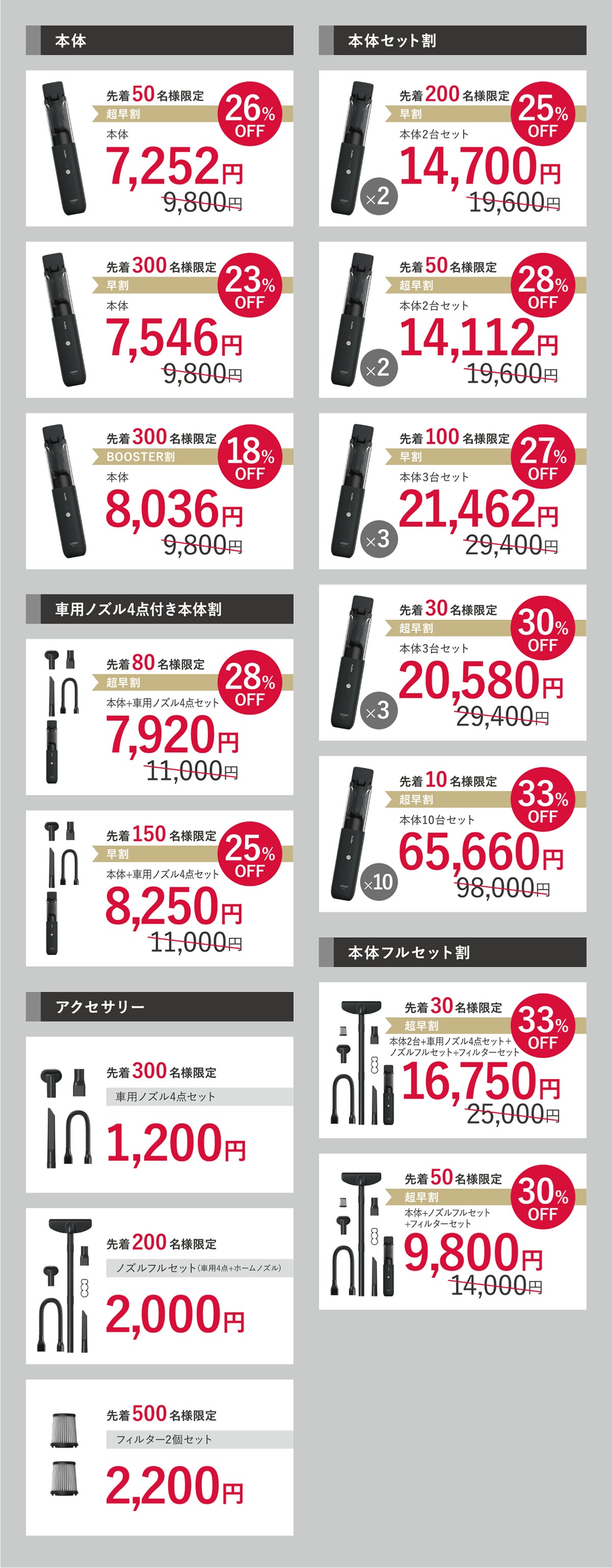 「専用HEPAフィルター」、「ノズルセット」は、セットのリターンをお選びいただくか、プロジェクト期間中に支援購入していただくことをおすすめします。