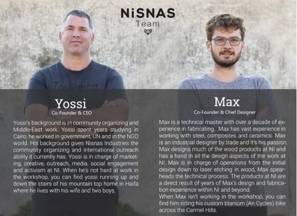 イスラエル/ハイファには芸術的な伝統に溢れており、地域には鉄鋼の巨匠や製造業者がたくさんいます。社会的・経済的には発展途上な中、地域活性を図るため本製品が開発されたのです。”モノづくりを通じて社会を発展させること”そして”自国の職人が誇りを持ってモノづくりに集中できる環境を実現すること”が彼らの夢であり目標です。