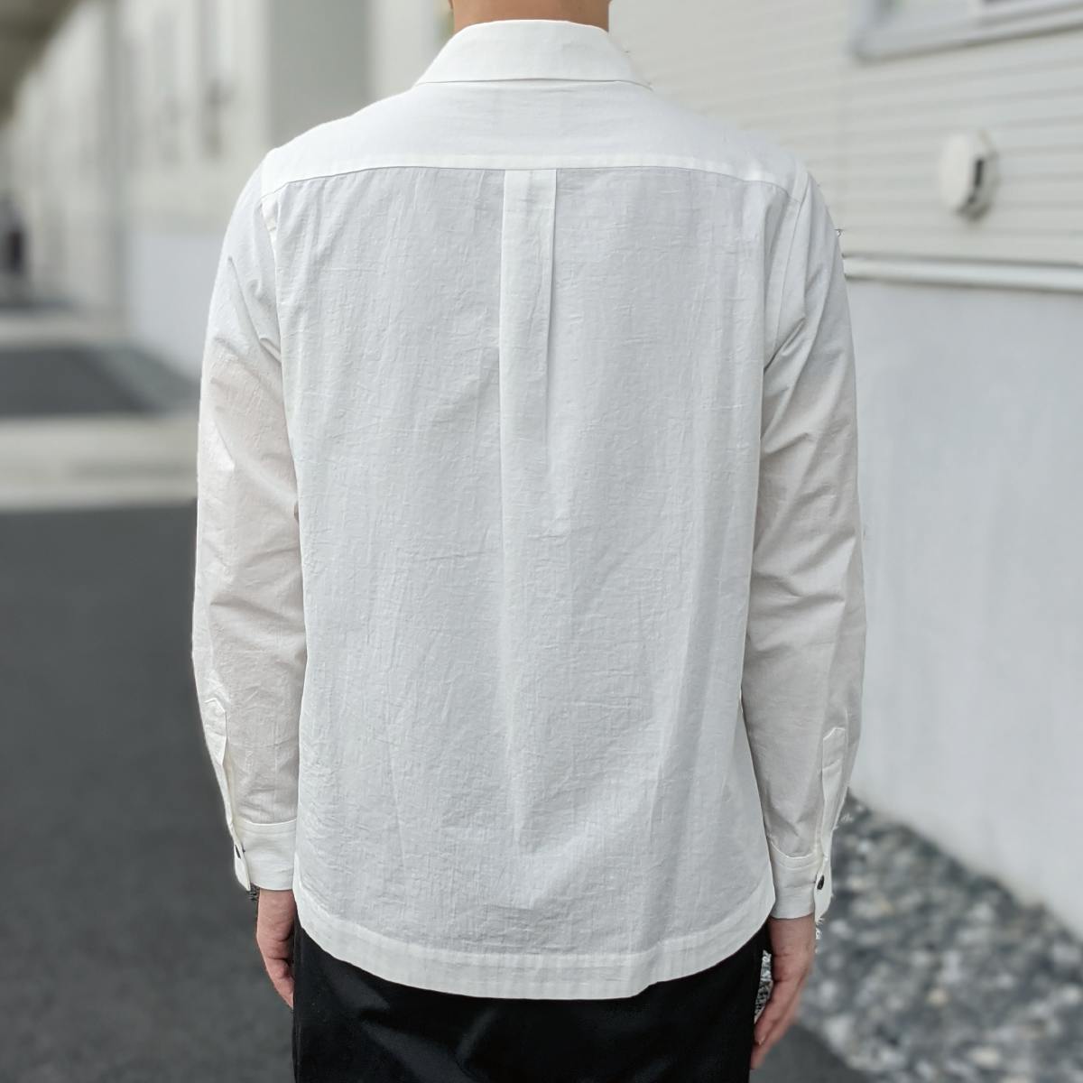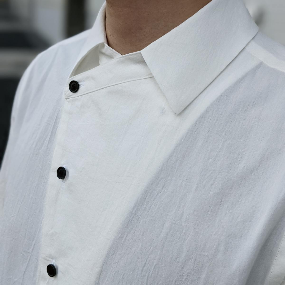 白シャツの前立ては、重なる箇所の色が濃くなる独特のデザインです。