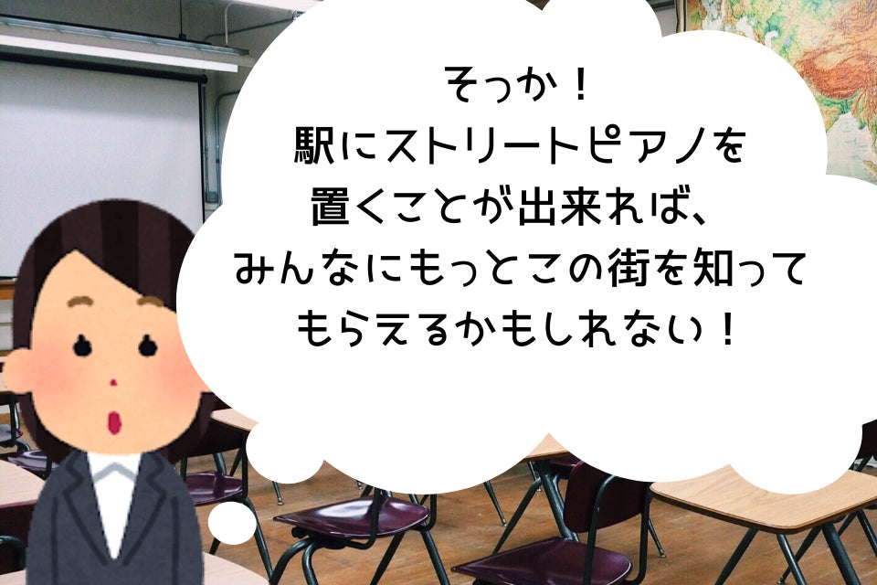 まちづくりの活動に参加した際、八街市とストリートピアノが大好きな中学生と出逢い、JR八街駅にストリートピアノを設置して、ここから笑顔の和を広げたい!という想いを知りました。なんとか実現することが出来ないかと、地域の人たちを巻き込みながら活動を進めて行くことになりましたが、様々な苦難が襲いかかります。