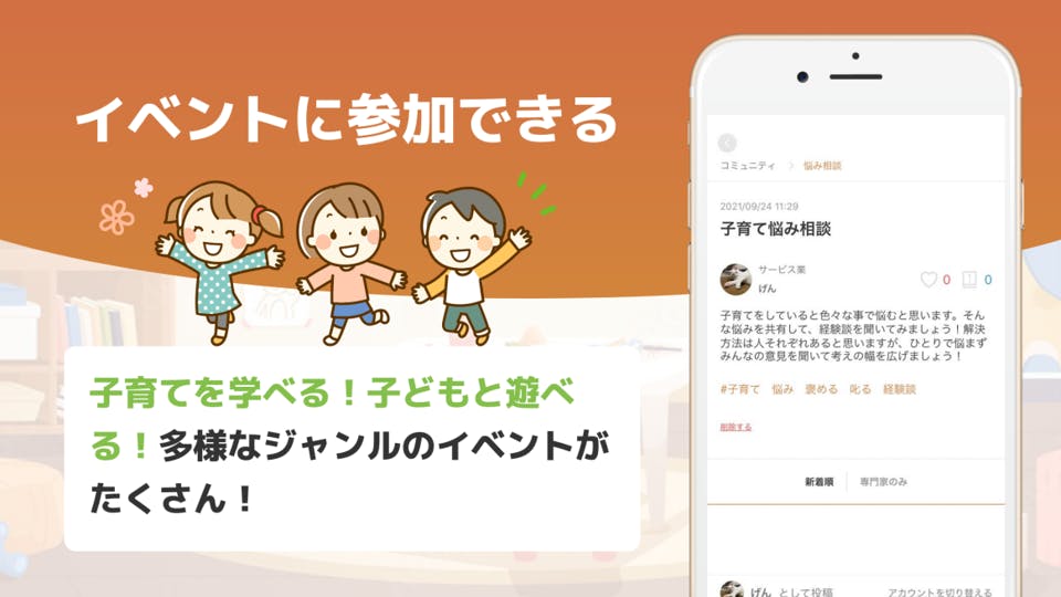 そこで我々は、家庭でできる家庭内教育(幼児教育)をはじめ、子育てに関するあらゆる分野の専門家から学ぶことができ、同じ悩みを抱えている仲間とコミュニティでつながることができ、様々なイベントに参加できるような「子育ての悩みを楽しみに変える」コミュニティをつくろうと決意しました。