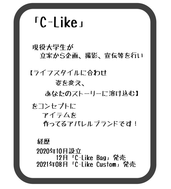 現在私たちは学生アパレルブランド「C-Like」を運営しております。