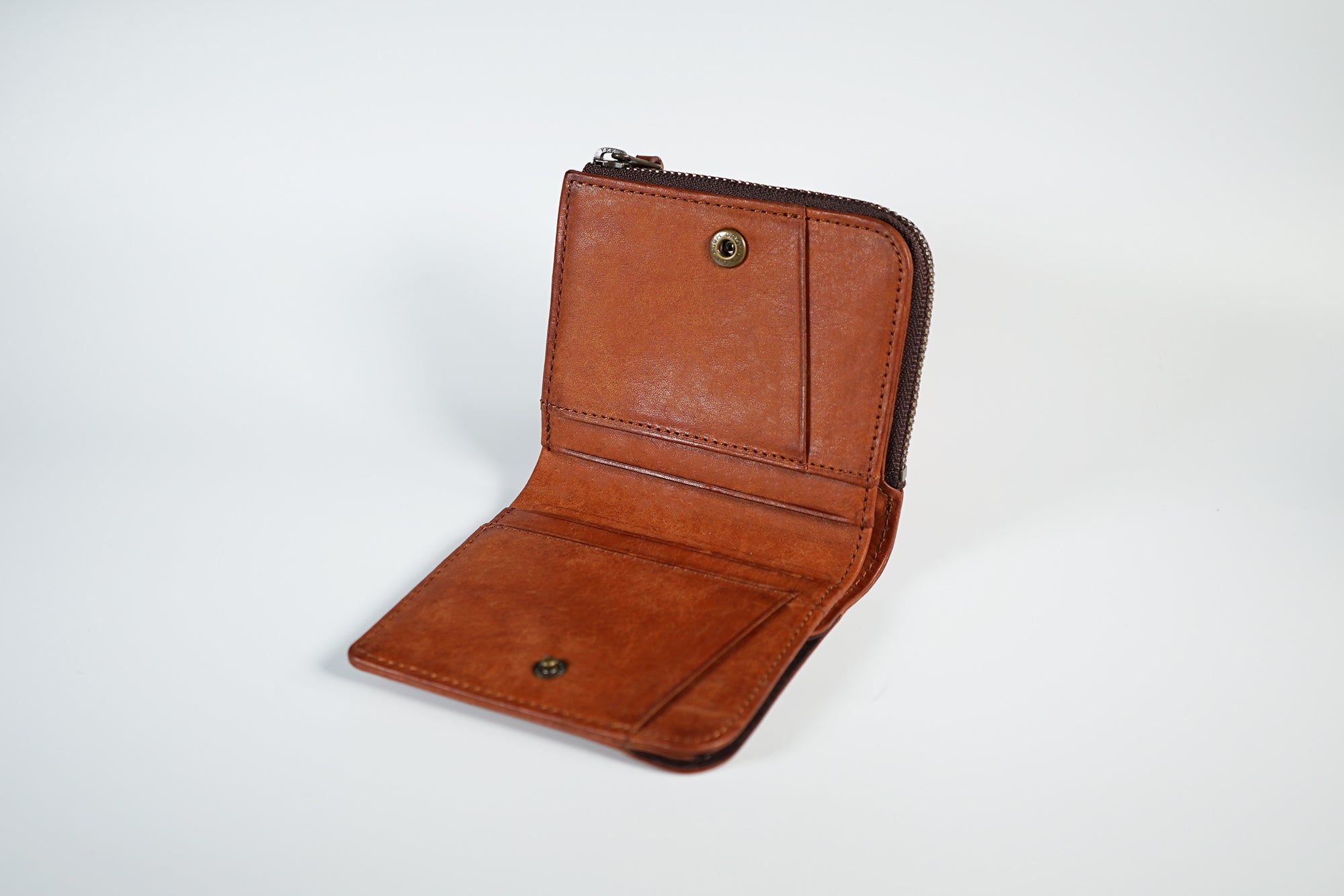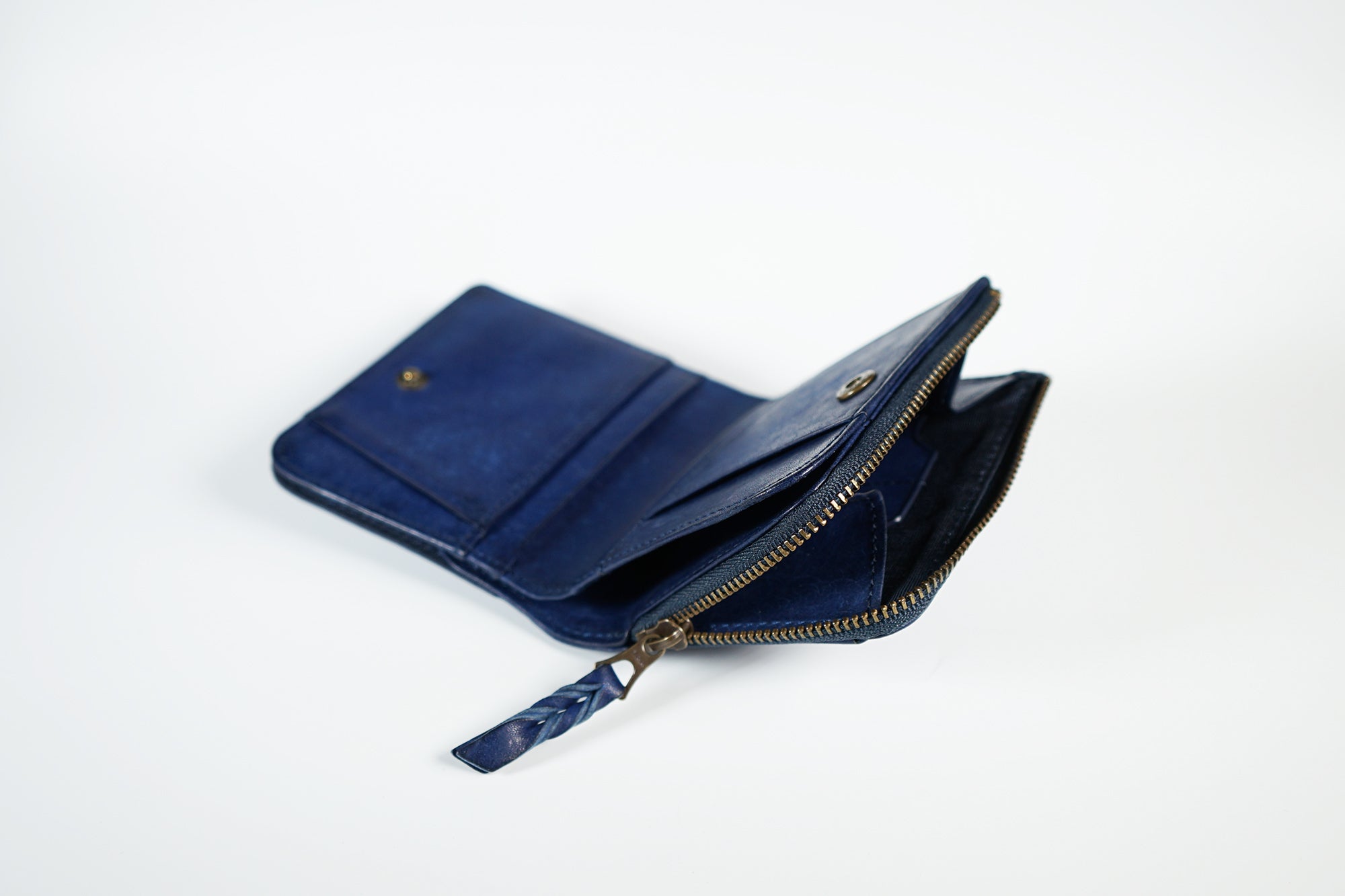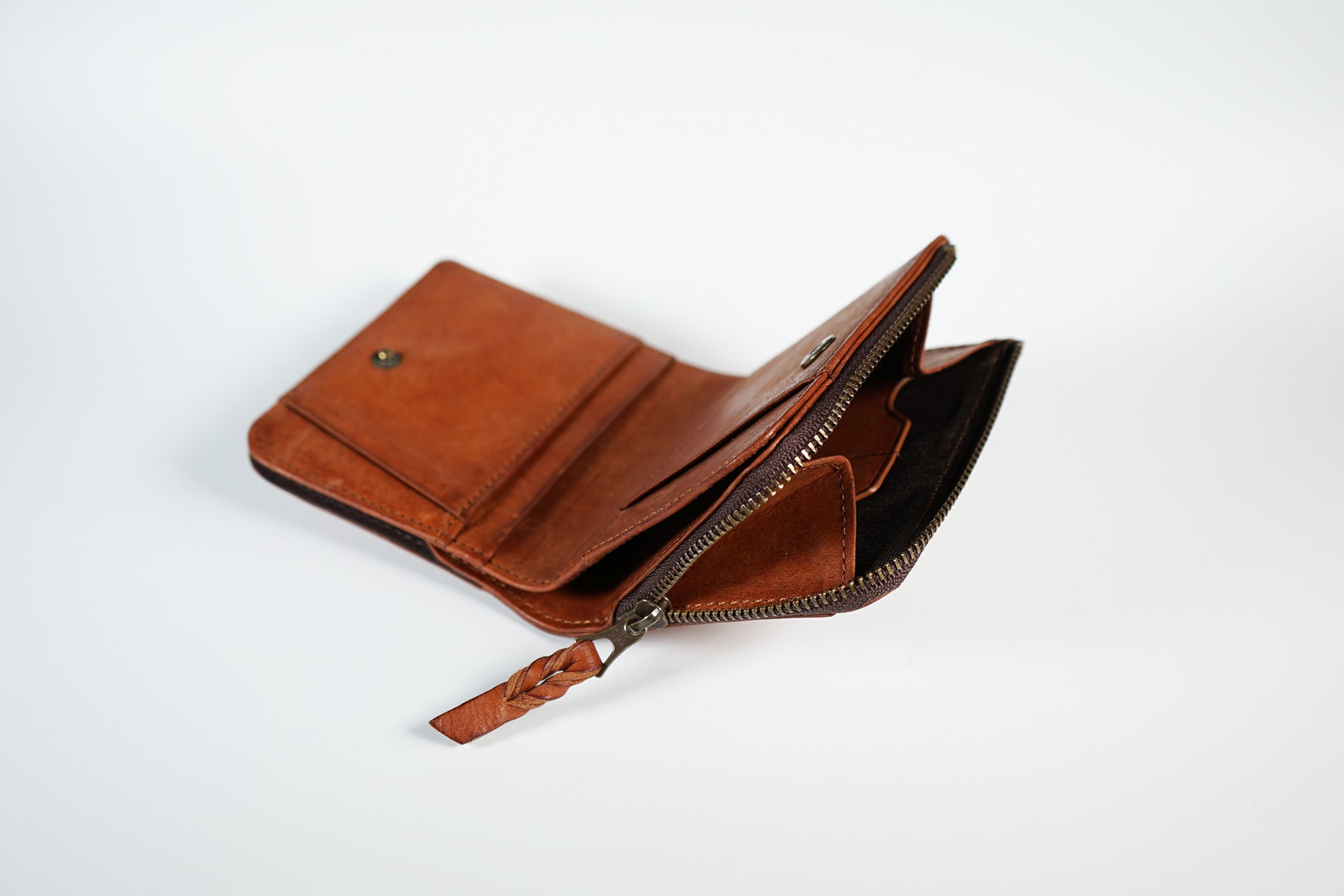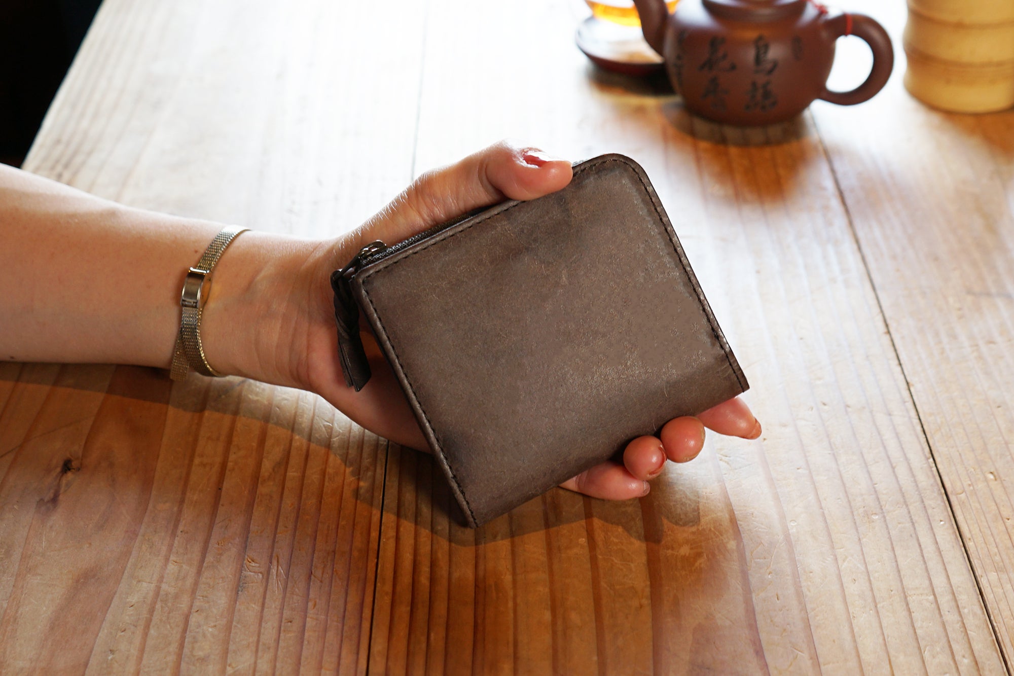 ファスナーは信頼のYKK社製。 まさにひとひねり加えた革引き手は、革製品らしい大人の遊び心を表現しました。