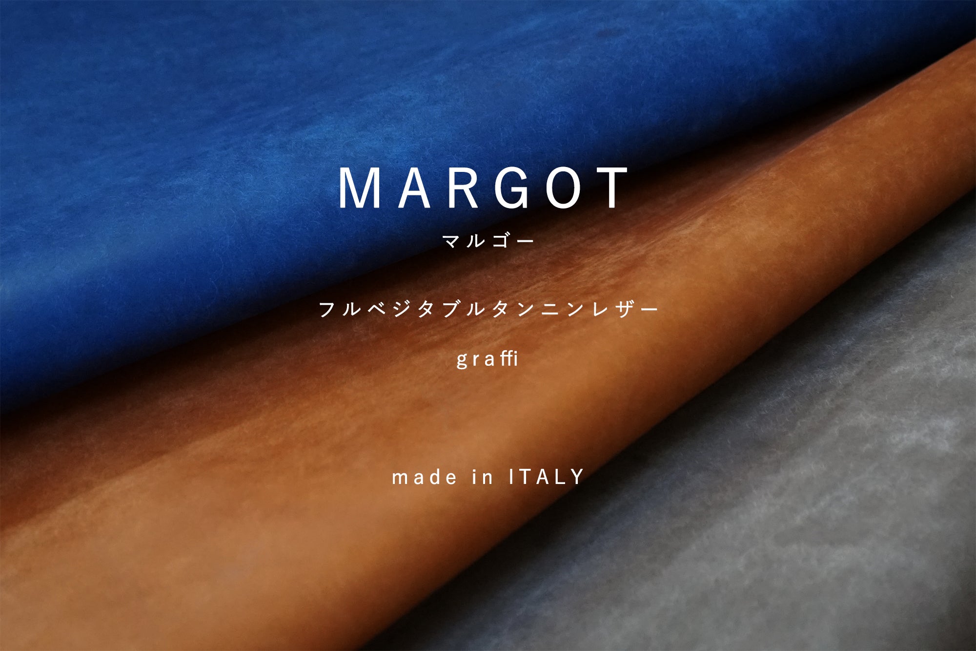 イタリアンレザー MARGOT/マルゴーとはイタリアのVirgillio Conceria Artigiana社が作っている革で、ヨーロッパ産の上質な原皮を使用した、フルベジタブルタンニンレザーにスクラッチ(graffi)加工が施されています。