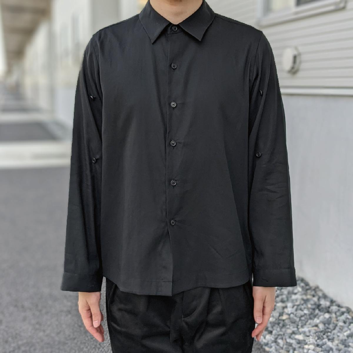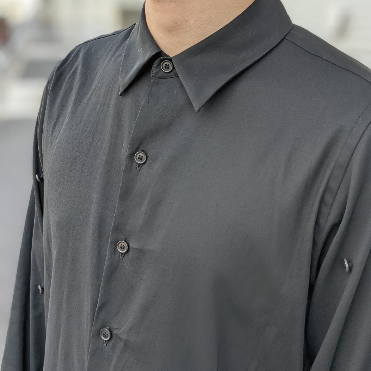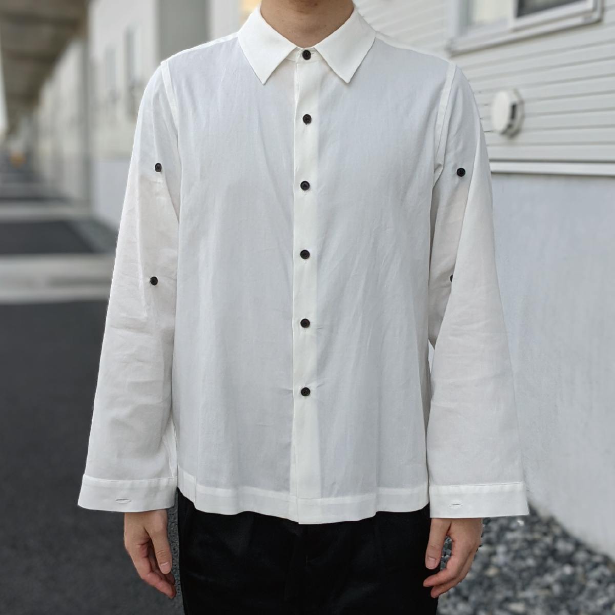 腕をまくる際はボタンを留める仕様となっており、留める位置でまくる量を変えることができます。配置されたボタンはデザインとしても面白く、他の製品とは異なる雰囲気を醸し出します。