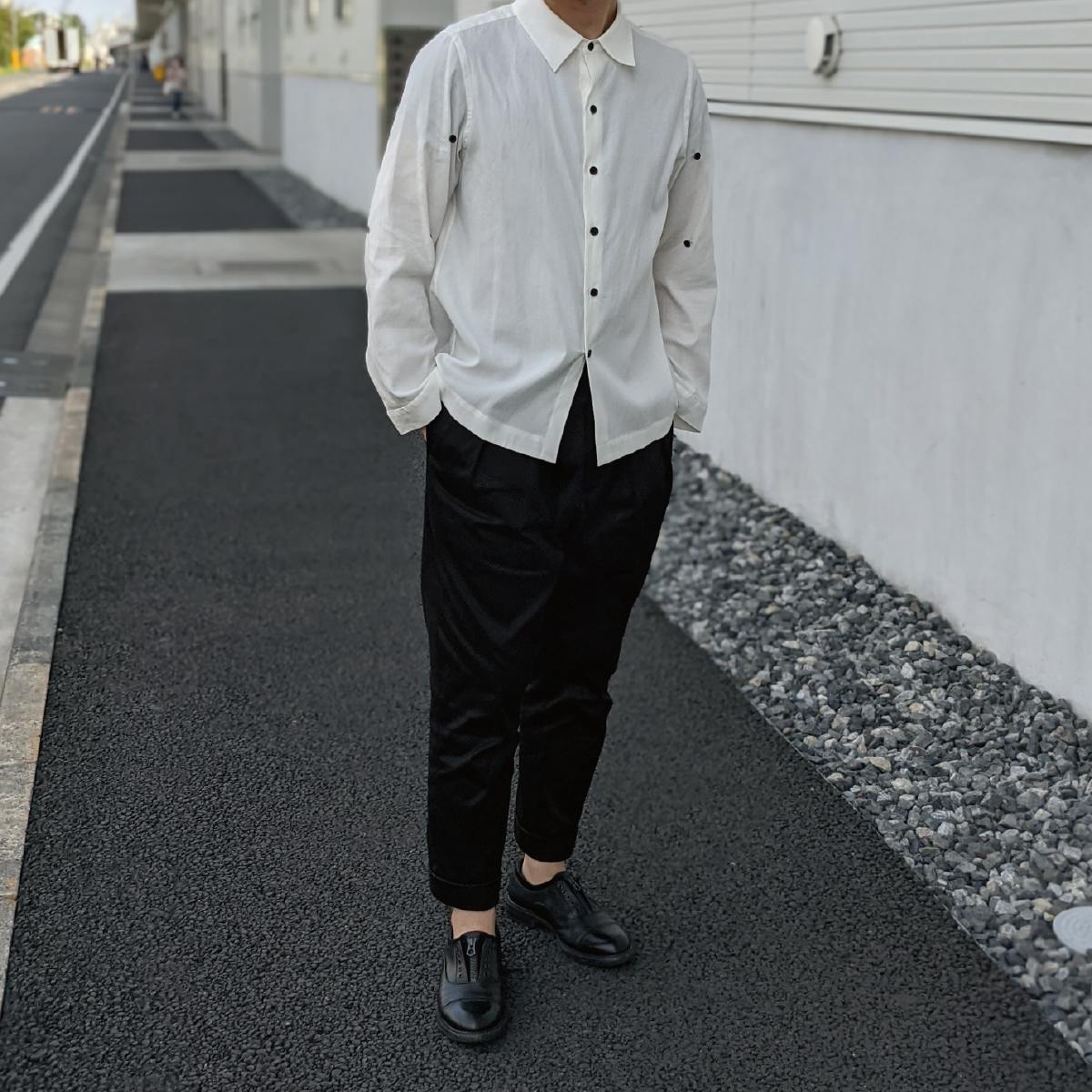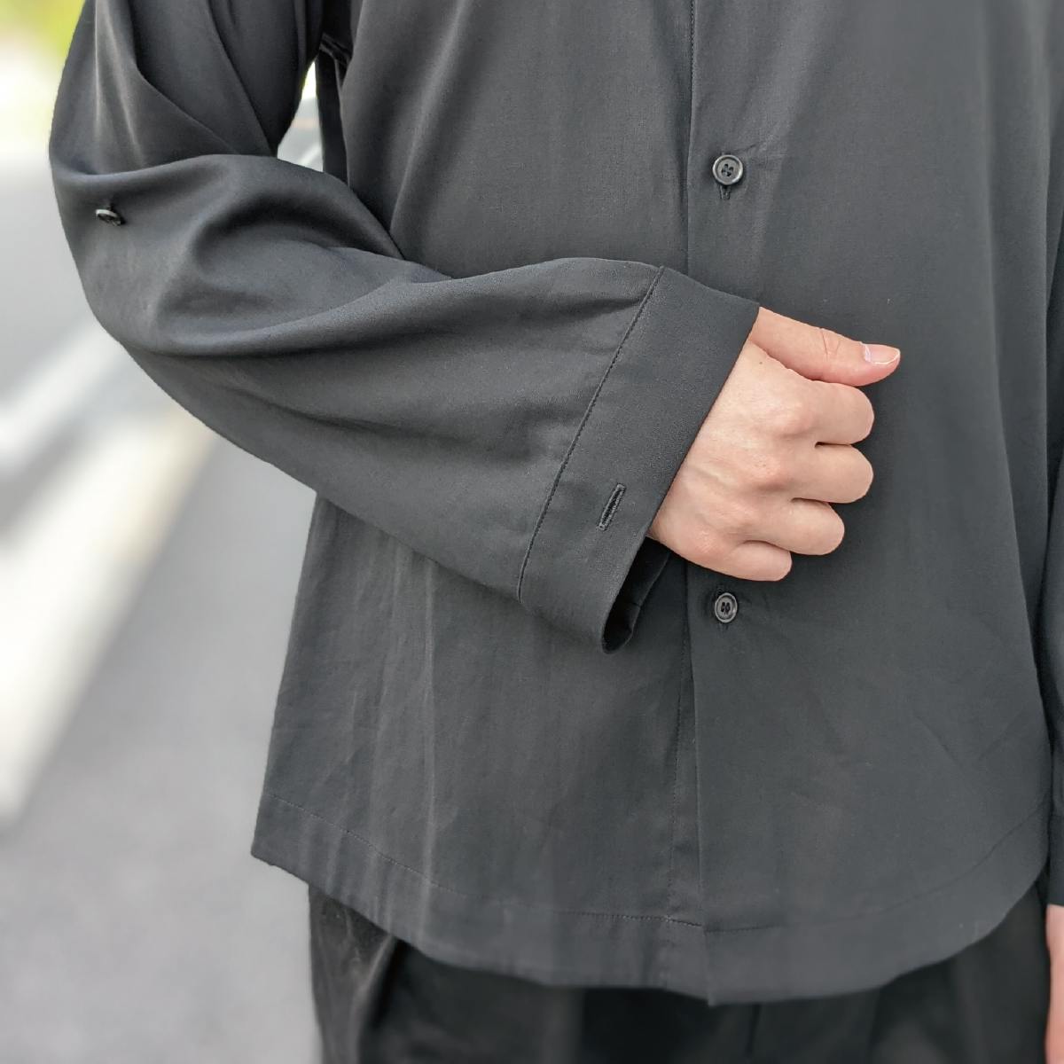 こちらのアイテムは袖(そで)が特徴で、洋服のシャツとは対照的に手首にゆとりを持たせることで和を連想させる雅な印象に仕上げました。