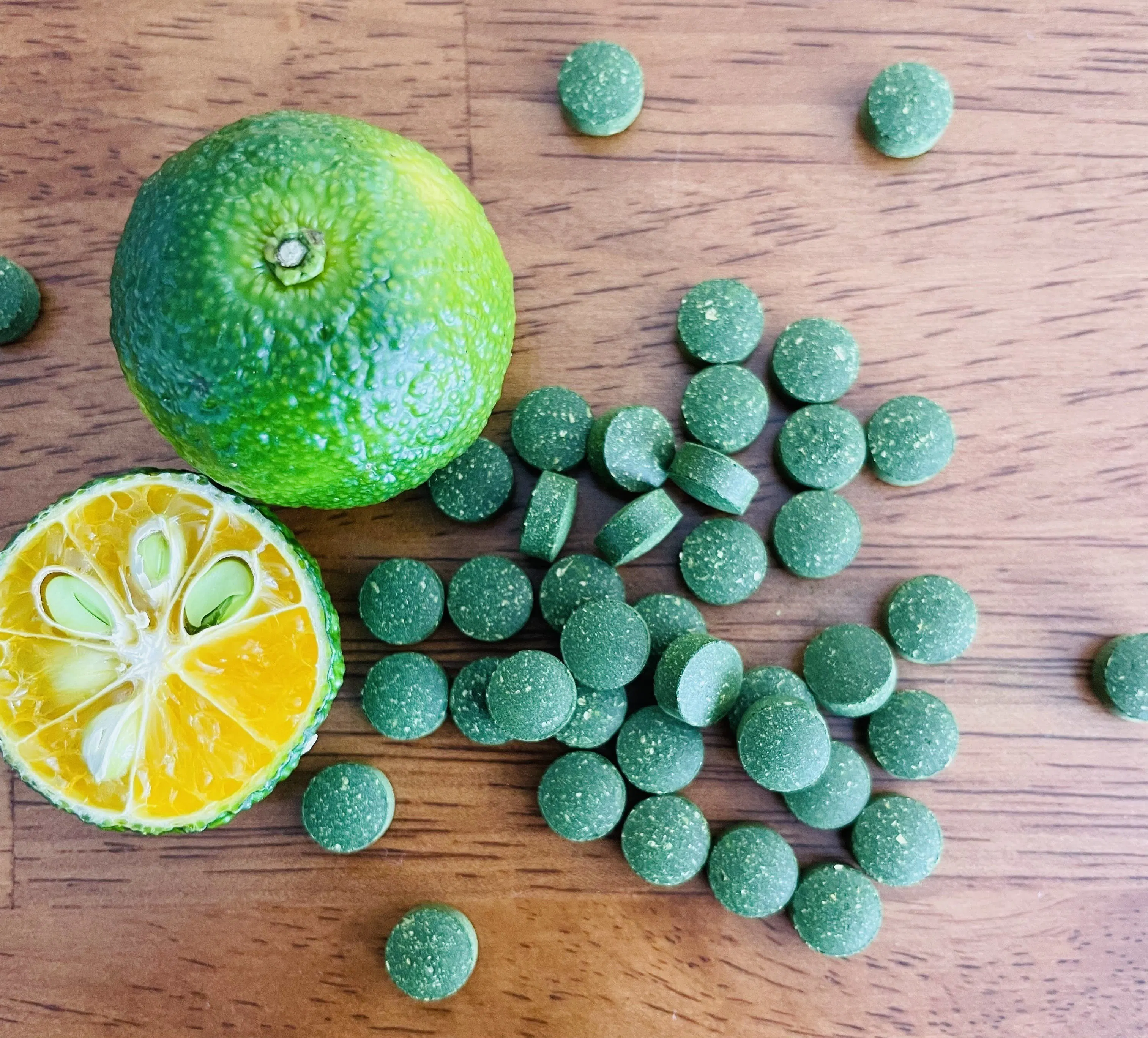 搾汁したあとに残る栄養が豊富な皮の部分は、鶏や豚の餌に利用されていますが、余った分は捨てられています。私たちは、その残った果皮の部分を有効活用する為に、価値のある天然資源として買い取り、フリーズドライ化した原料をサプリメントに配合することで、地域貢献とSDGsに繋がる取り組みも行っております。
