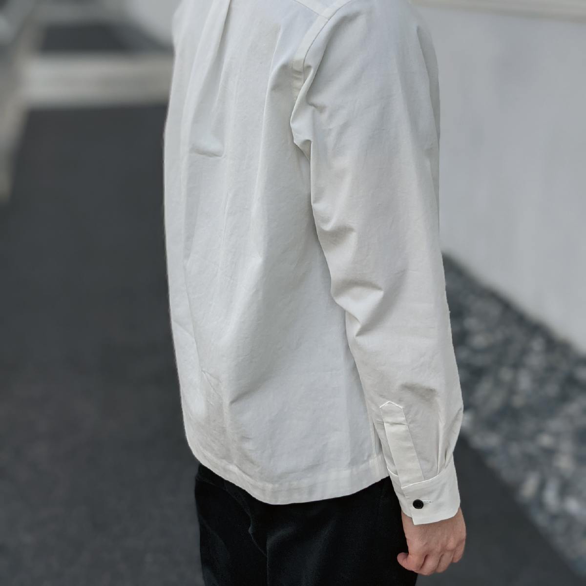 こちらのアイテムの特徴は前立てで、幅を5cmと広めに設定し、通常のシャツとは異なり外側に折り返されています。
