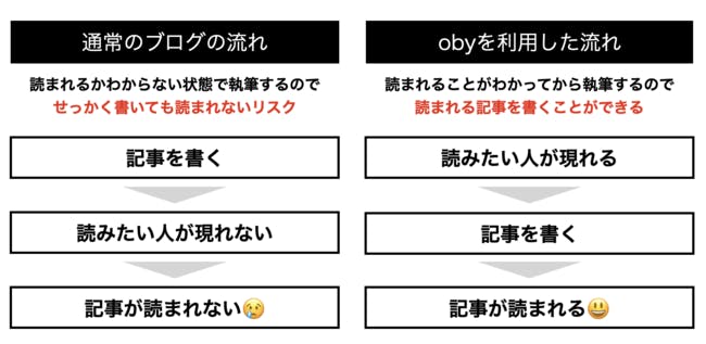 読みたい人が現れてから本文を書き始めるので「せっかく書いたのに読まれない」リスクを抑えることができるのが最大の特徴です。