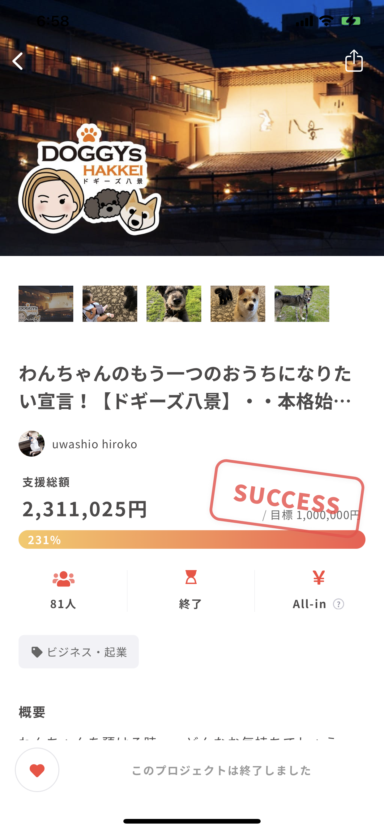 ご支援の額に限らず・・ご協力いただいた皆さまはもうすでに”ドギーズ八景”のファミリーです。
