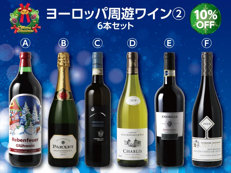 クリスマスマーケットが開催されているヨーロッパを周遊できるワインの6本セットです。いつもよりちょっといいワインが楽しめるラインナップです。