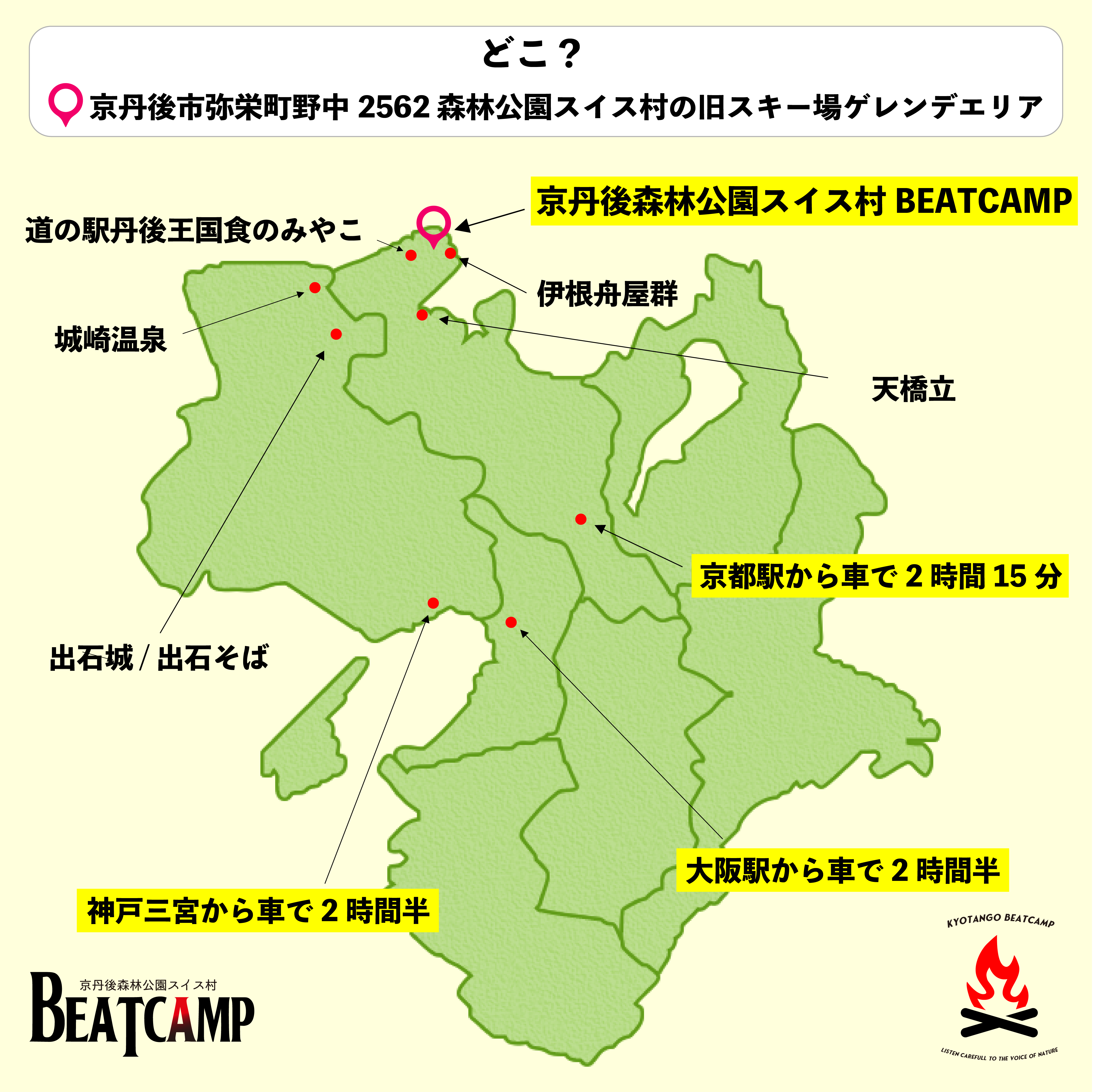2022年6月、野外アウトドア音楽施設「京丹後森林公園スイス村BEATCAMP」を同施設内、旧ゲレンデエリアにグランドオープンいたします!