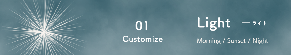 照明デザイナー監修のもと、Mornig・Sunset・Nightをイメージしてデザインしました。