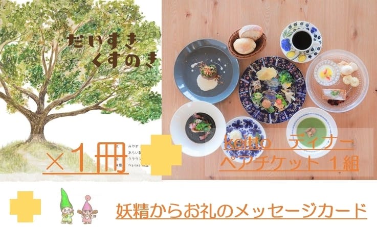 ⑤『だいすき くすのき』絵本 + ペアディナーチケット + 妖精からお礼のメッセージ 10,000円(税込)