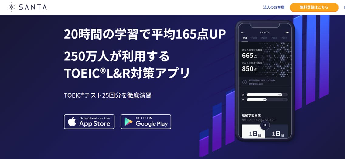 6.8,000円(販売予定価格23,700円) :TOEIC問題5000問がパート別に解けるアプリSANTA TOEIC3ヵ月使い放題。さらにTOEIC模擬テスト2回と事務局から学習進捗確認 付きの特別企画料金です!