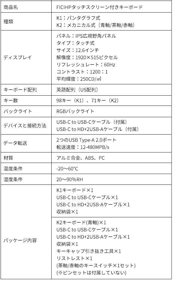 「FICIHP」は12.6インチタッチスクリーン搭載、Android/Windows/macOSに対応するキーボードです。スマホやパソコンに接続すれば、複数の作業を同時に行え、マウスより直感的に操作可能。
