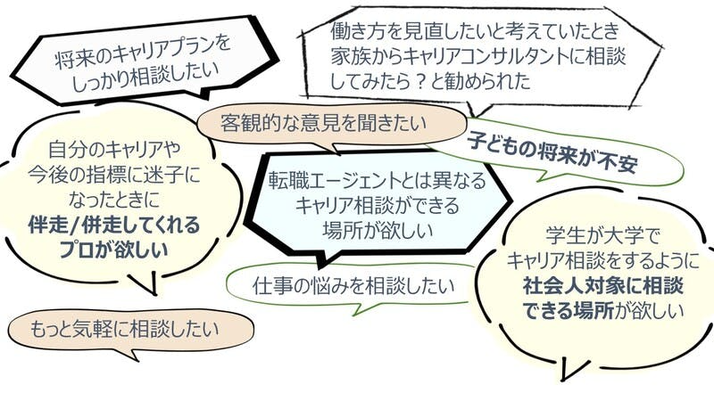 「学生が大学でキャリア相談をするように、社会人対象に相談できる場所が欲しい」
