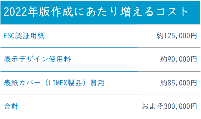 「オンライン相談付きキヤリア手帳2022」は創る工程から作り手・素材にこだわっています。こだわりある商品・サービス提供をするにあたり、2021年試作版からコストが増加する見込みとなりました。