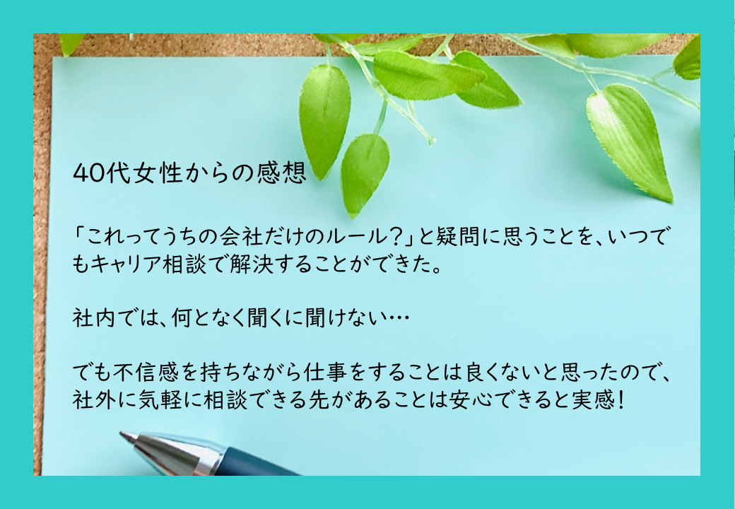 上記の意見は、実際にキャリアカウンセリングを受けられた方からのお言葉です。