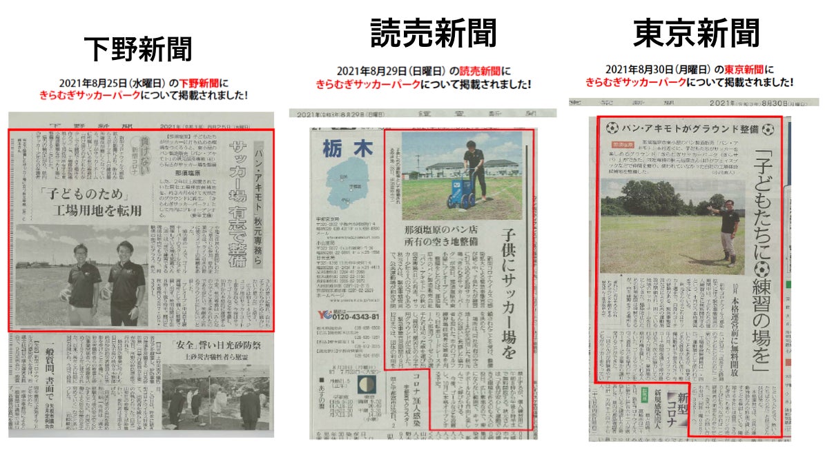 そんなパン・アキモトがこの度、新たな地域貢献事業として「コロナ禍でも子供達が元気よくスポーツを楽しめるサッカー場「きらむぎサッカーパーク」(略して「きらサパ」)」をオープンします!